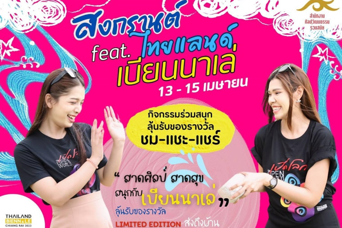 อากาศร้อนอย่างนี้เหมาะกับเทศกาลประเพณีสงกรานต์ปีใหม่ไทย ทั้งคนไทยและนักท่องเที่ยวต่างชาติที่เดินทางเข้ามาเที่ยวประเทศไทยคงสนุกสนานเล่นสาดน้ำ ด้านสำนักงานศิลปวัฒนธรรมร่วมสมัย(สศร.) ร่วมกับจังหวัดเชียงราย ได้จัดงานมหกรรมศิลปะร่วมสมัยนานาชาติ ไทยแลนด์เบียนนาเล่เชียงราย แสดงถึงวันที่ 30 เมษายน 2567 มีกิจกรรมต่างๆ มากมาย มีผู้เข้าชมงานเกือบ 3,000,000 คน ทั้งนี้เพื่อให้นักท่องเที่ยวที่เดินทางไปเที่ยวเชียงรายได้มีโอกาสชมงานศิลปะระดับโลกไปพร้อมๆ กับการเที่ยวงานสงกรานต์อย่างสนุกยิ่งขึ้น จึงได้จัดกิจกรรม “สาดศิลป์ สาดสุข สนุกกับเบียนนาเล่” ระหว่างวันที่ 13 – 15 เม.ย. ลุ้นรับของรางวัล limited edition เช่น เสื้อยืดเบียนนาเล่ กระเป๋าเบียนนาเล่ แฟลชไดรฟ์เบียนนาเล่ พัดเบียนนาเล่ คูปองส่วนลดค่าที่พักและร้านอาหารในเชียงราย มีกติกา คือ เมื่อเข้าชมผลงานศิลปะ ในจุดแสดงงานมหกรรมศิลปะร่วมสมัยนานาชาติ ไทยแลนด์เบียนนาเล่เชียงราย ให้ถ่ายภาพ หรือถ่ายคลิปที่มีภาพตนเองคู่กับงานศิลป์ และโพสต์/แชร์บนเฟสบุ๊ก หรืออินสตาแกรม ตั้งค่าสาธารณะ ติดแฮทแทค #thailandbiennalechiangrai2023, #thailandbiennale #สำนักงานศิลปวัฒนธรรมร่วมสมัย จะจัดส่งของรางวัลให้ถึงบ้าน