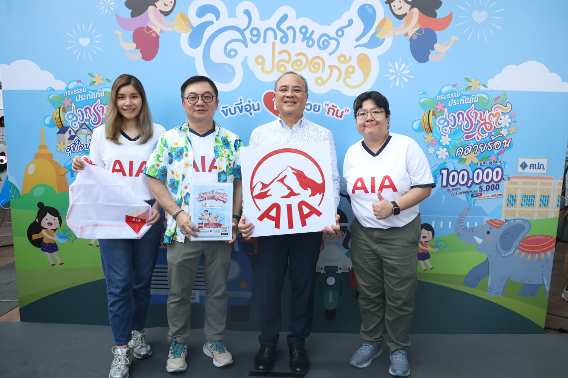 กรุงเทพฯ, 10 เมษายน 2567 – เอไอเอ ประเทศไทย นำโดย นายสุวิรัช พงศ์เสาวภาคย์ ผู้อำนวยการฝ่ายกิจการภายนอก (ที่ 2 จากซ้าย) ร่วมเปิดตัว “โครงการรณรงค์ความปลอดภัยทางถนนในช่วงเทศกาลสงกรานต์ประจำปี 2567” ภายใต้ชื่อ โครงการรณรงค์สงกรานต์ปลอดภัย ขับขี่อุ่นใจด้วย ‘กัน’ จัดขึ้นโดยสำนักงานคณะกรรมการกำกับและส่งเสริมการประกอบธุรกิจประกันภัย (คปภ.) เพื่อสนับสนุนและผลักดันการขับขี่ปลอดภัยในช่วงเทศกาลปีใหม่ไทย พร้อมส่งประชาชนเดินทางกลับบ้านอย่างปลอดภัยผ่านการมอบความคุ้มครองประกันอุบัติเหตุ ในโอกาสนี้ เอไอเอ ยังได้ร่วมออกบูธเพื่อเชิญชวนประชาชนที่เดินทางบริเวณเกาะพหลโยธินที่สนใจลงทะเบียนรับสิทธิกรมธรรม์ประกันอุบัติเหตุฟรีกับแคมเปญ “กรมธรรม์ประกันภัยกลุ่มสงกรานต์ (ไมโครอินชัวรันส์)” โดยได้รับเกียรติจาก นายชูฉัตร ประมูลผล (ที่ 2 จากขวา) เลขาธิการสำนักงาน คปภ. ให้เกียรติเป็นประธานเปิดงาน ณ เกาะพหลโยธิน อนุสาวรีย์ชยสมรภูมิ เมื่อวันที่ 4 เมษายน ที่ผ่านมา