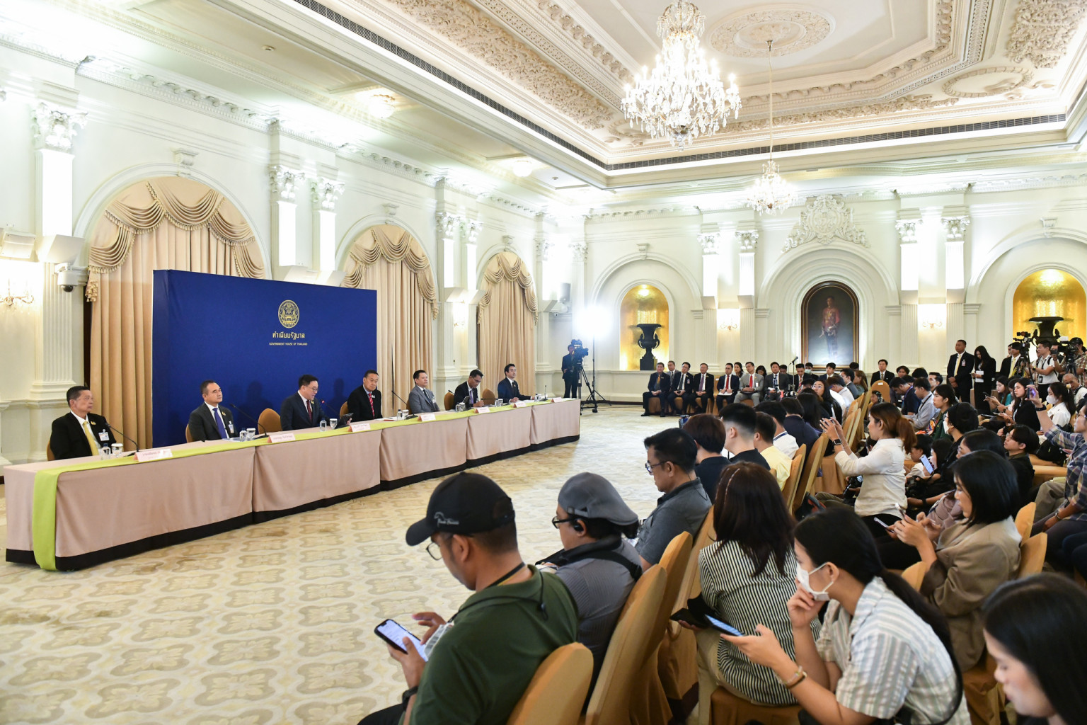 เมื่อเวลา 11.30 น. วันที่ 10 เม.ย.67 ที่ตึกสันติไมตรี (หลังใน) ทำเนียบรัฐบาล นายเศรษฐา ทวีสิน นายกรัฐมนตรีและรมว.คลัง เป็นประธานการแถลงข่าวผลการประชุมคณะกรรมการนโยบายโครงการเติมเงิน 10,000 บาท ผ่าน Digital Wallet โดยมี นายกฤษฎา จีนะวิจารณะ รมช.คลัง นายจุลพันธ์ อมรวิวัฒน์ รมช.คลัง นายลวรณ แสงสนิท ปลัดกระทรวงการคลัง นายเผ่าภูมิ โรจนสกุล เลขานุการรัฐมนตรีว่าการกระทรวงการคลัง นายเฉลิมพล เพ็ญสูตร ผู้อำนวยการสำนักงบประมาณ และนายดนุชา พิชยนันท์ เลขาธิการสภาพัฒนาการเศรษฐกิจและสังคมแห่งชาติ