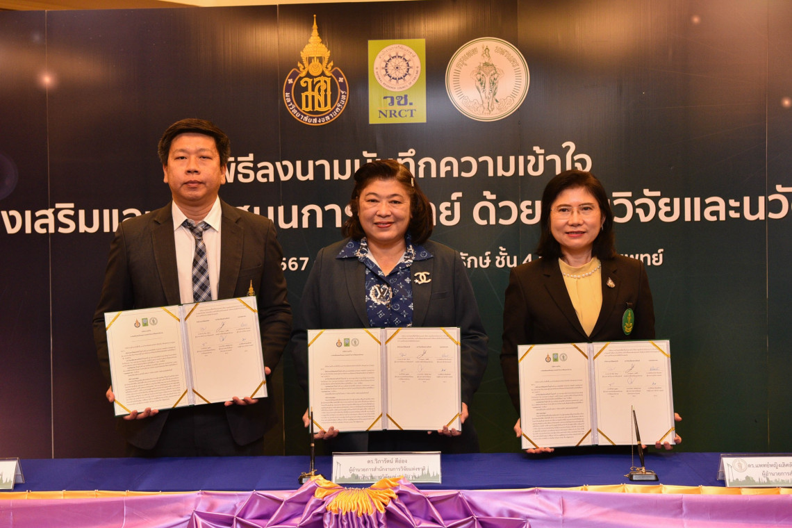 สำนักงานการวิจัยแห่งชาติ (วช.) ร่วมกับ มหาวิทยาลัยสงขลานครินทร์ (ม.อ.) และ กรุงเทพมหานคร (กทม.) ร่วมลงนามบันทึกความเข้าใจและสนับสนุนการแพทย์ ด้วยงานวิจัยและนวัตกรรม โดยมี ดร.วิภารัตน์ ดีอ่อง ผู้อำนวยการสำนักงานการวิจัยแห่งชาติ พร้อมด้วย รศ.นพ.วรวิทย์ วาณิชย์สุวรรณ ผู้อำนวยการสถาบันวิจัยและนวัตกรรมทางการแพทย์ มหาวิทยาลัยสงขลานครินทร์ และ ดร.พญ.เลิศลักษณ์ ลีลาเรืองแสง ผู้อำนวยการสำนักการแพทย์ กรุงเทพมหานคร ร่วมกันลงนามความร่วมมือ ณ สำนักการแพทย์ กรุงเทพมหานคร