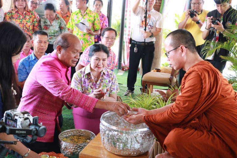 วันพฤหัสบดีที่ 11 เมษายน 2567 เวลา 10.00 น. นายชูศักดิ์ ราชบุรี รองผู้ว่าราชการจังหวัดร้อยเอ็ด เป็นประธานในพิธีสรงน้ำพระ 9 วัด รับน้ำพระพุทธมนต์เสริมมงคลชีวิต "สืบสานสงกรานต์วิถีไทย ร่วมสานใจไทยสู่สากล" ณ วัดวิมลนิวาส อำเภอเมืองร้อยเอ็ด จังหวัดร้อยเอ็ด โดยมีหัวหน้าส่วนราชการ ข้าราชการ พนักงาน และพี่น้องประชาชนเข้าร่วมพิธี