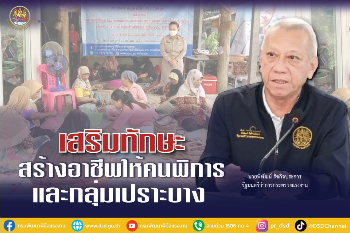รมว.แรงงานสั่งการกรมพัฒนาฝีมือแรงงาน เร่งเสริมทักษะแรงงานกลุ่มเปราะบาง สร้างโอกาสการมีงานทำ เน้นผู้สูงอายุ คนพิการ และสตรี ปูพื้นฐานรายได้ยกระดับ GDP ของประเทศโดยรวม