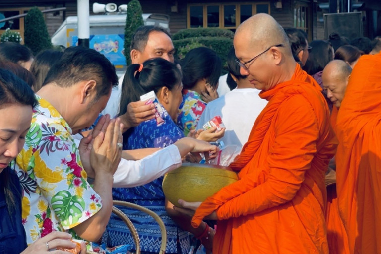 วันที่ 13 เม.ย.67 นายพุฒิพงศ์ ศิริมาตย์ ผู้ว่าราชการจังหวัดเชียงราย เป็นประธานในพิธี ทำบุญตักบาตร พระภิกษุสงฆ์สามเณรจำนวน 73 รูป เนื่องในวันขึ้นปีใหม่ไทย วันสงกรานต์ ”ป๋าเวณีปี๋ใหม่เมือง จ.ศ. 1386” ที่ทางเทศบาลนครเชียงรายจัดขึ้น บริเวณแยกสุริวงค์ ถนนธนาลัย โดยมี นายวันชัย จงสุทธานามณี นายกเทศมนตรีนครเชียงราย นางรัตนา จงสุทธานามณี ที่ปรึกษารองนายกรัฐมนตรี (นายภูมิธรรม เวชยชัย) พร้อมด้วยคณะผู้บริหารเทศบาลนครเชียงราย ข้าราชการ เจ้าหน้าที่เทศบาลนครเชียงราย และหัวหน้าส่วนราชการในจังหวัดเชียงราย รวมทั้ง ชาวเชียงราย นักท่องเที่ยว ร่วมกับทำบุญตักบาตร โดยมีพระสงฆ์ สามเณร ออกรับบิณฑบาต เริ่มตั้งแต่แยกสุริวงค์ จนถึง แยกศาล ถนนธนาลัย รวมระยะทาง 1 กิโลเมตร