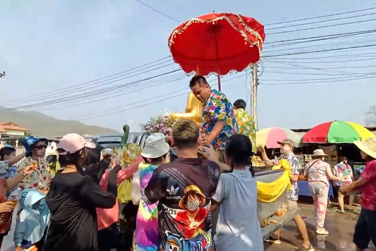 ประชาชนชาวอำเภอแม่สะเรียง จ.แม่ฮ่องสอน ร่วมขบวนแห่สรงน้ำพระเพชร พระคู่เมืองยวม/แม่สะเรียง โดยมีนายอำเภอแม่สะเรียงนำหัวหน้าส่วนราชการเข้าร่วมขบวนอย่างคึกคัก
