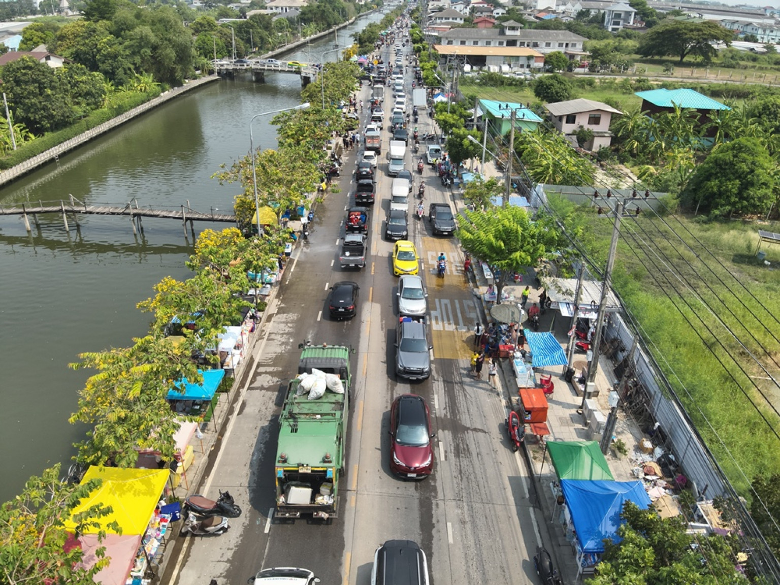 เนื่องจากสงกรานต์ปีนี้ถนนเลียบคลองทวีวัฒนา ไม่ได้มีการปิดการจราจร เพียงแต่ทาง สน.หนองค้างพลู ประกาศห้ามรถยนต์บรรทุกภาชนะน้ำหรือคนโดยสารเข้ามาเล่นน้ำ และห้ามจอดรถเปิดเครื่องเสียงให้คนเต้น จึงได้ขอสนับสนุน ชุดปฏิบัติการควบคุมบินโดรน ของ สน.ภาษีเจริญ ขึ้นบินตรวจสอบสภาพพื้นที่ในห้วงที่ประชาชน เดินทางมาสาดน้ำสงกรานต์ ตลอด 3 วัน นอกจากจะเป็นการป้องกันปราบปรามอาชญากรรมรักษาความสงบเรียบร้อยแล้ว ยังใช้โดรนเป็นเครื่องมือดูแลอำนวยความสะดวกด้านการจราจร การป้องกันและลดอุบัติเหตุได้อย่างมีประสิทธิภาพอีกด้วย.