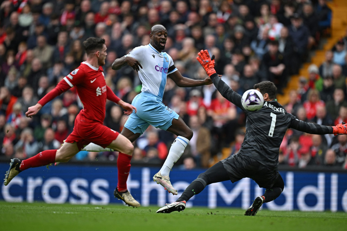ที่สนาม แอนฟิลด์ ประเทศอังกฤษ ในการแข่งขันฟุตบอลพรีเมียร์ลีก ฤดูกาล 2023-2024 คืนวันที่ 14 เม.ย.67 ระหว่างทีม "ลิเวอร์พูล" พบกับทีม "คริสตัล พาเลซ" เริ่มเกมการแข่งขัน นาทีที่ 14 "คริสตัล พาเลซ" ออกนำ 1-0 จาก เอเบเรชี เอเซ สอดขึ้นมายิงเผาขน แบบไร้ตัวประกบ บอลพุ่งเข้าประตูไป