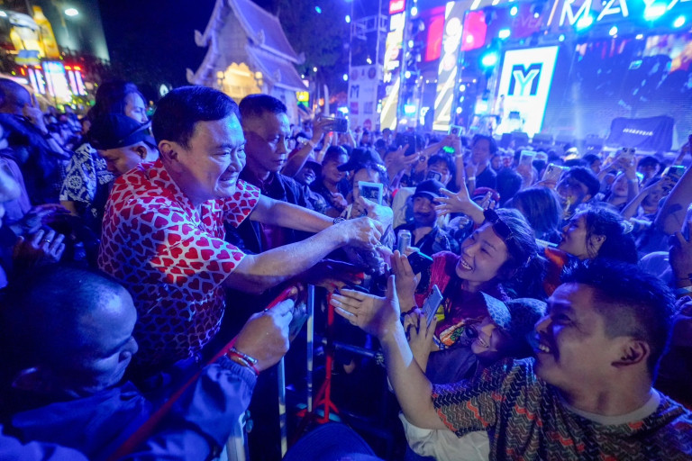 ทันทีที่ นายทักษิณ ขึ้นบนเวที ได้รับเสียงกรี๊ดจากบรรดาวัยรุ่นนักท่องเที่ยวที่มาเล่นน้ำสงกรานต์ที่หน้าบริเวณห้างสรรพสินค้าเมญ่า ซึ่งมีผู้ที่ขอถ่ายรูปร่วมกับนายทักษิณเป็นระยะ ซึ่งในบางช่วงนายทักษิณ ได้หยิบปืนฉีดน้ำขนาดเล็ก ร่วมเล่นกับ น้ำด้วย และบางช่วงมีวัยรุ่นมาขอถ่ายรูป พร้อมบอกว่าขอถ่ายไปฝากคุณแม่ โดยนายทักษิณมีสีหน้ายิ้มแย้มและมีท่าทีมีความสุขตลอดร่วมกิจกรรม