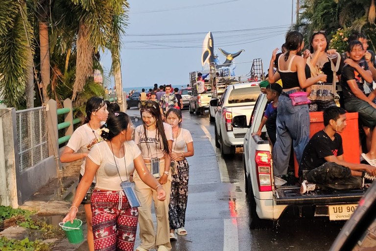 วันที่ 14 เมษายน 2567 ผู้สื่อข่าวรายงานว่า ที่บริเวณชายทะเลบ้านกรูด ต.ธงชัย อ.บางสะพาน จ.ประจวบคีรีขันธ์ บรรยากาศคึกคักอย่างมาก มีประชาชนและนักท่องเที่ยวหลายพันคน ต่างหลั่งไหล ร่วมเล่นสาดน้ำเนื่องในเทศกาลสงกรานต์ กันอย่างต่อเนื่องตลอดทั้งวัน ส่งผลทำให้การจราจรติดขัด เจ้าหน้าที่ตำรวจต้องช่วยกันระบายการจราจร ซึ่งตามธรรมเนียมของชาวบ้านที่บ้านกรูด จะเล่นสาดน้ำสงกรานต์ต่อเนื่อง 5 วันเต็มเลยทีเดียว