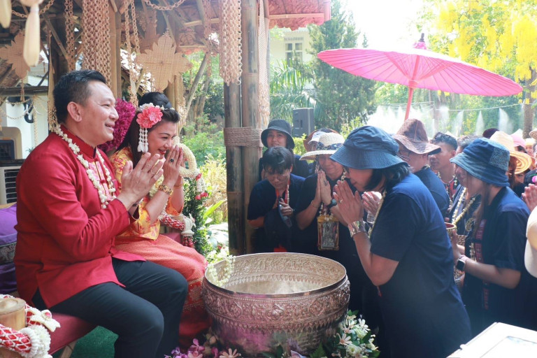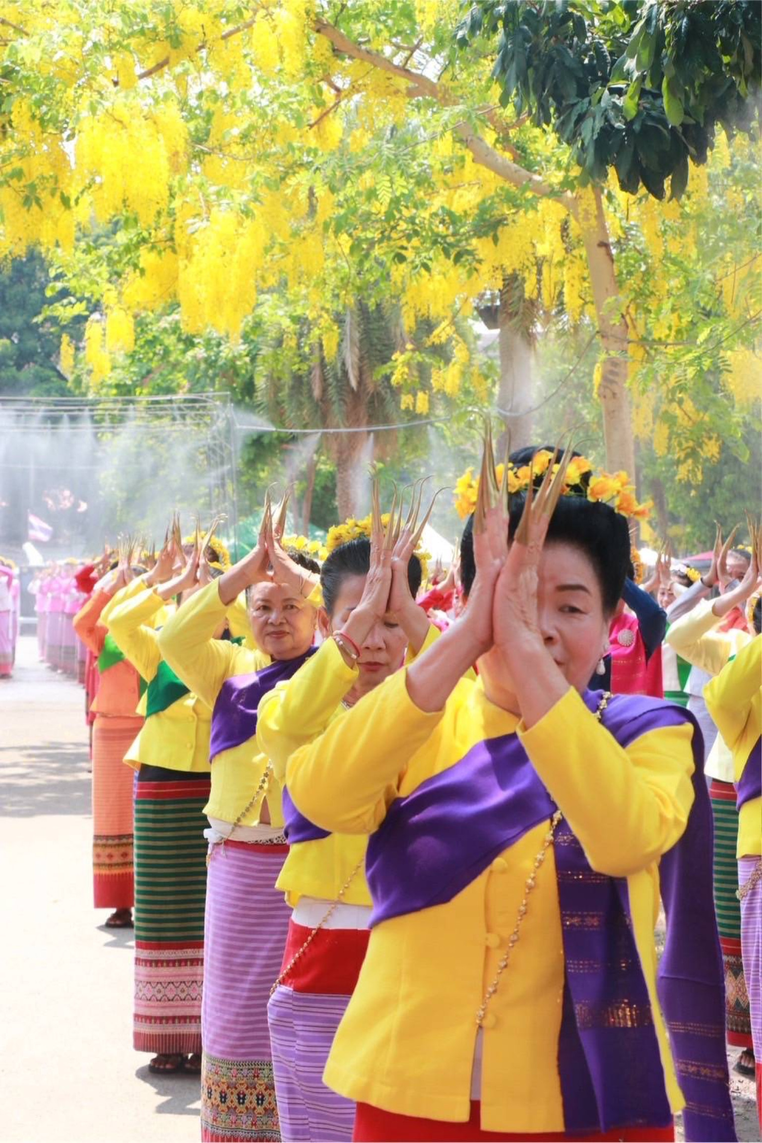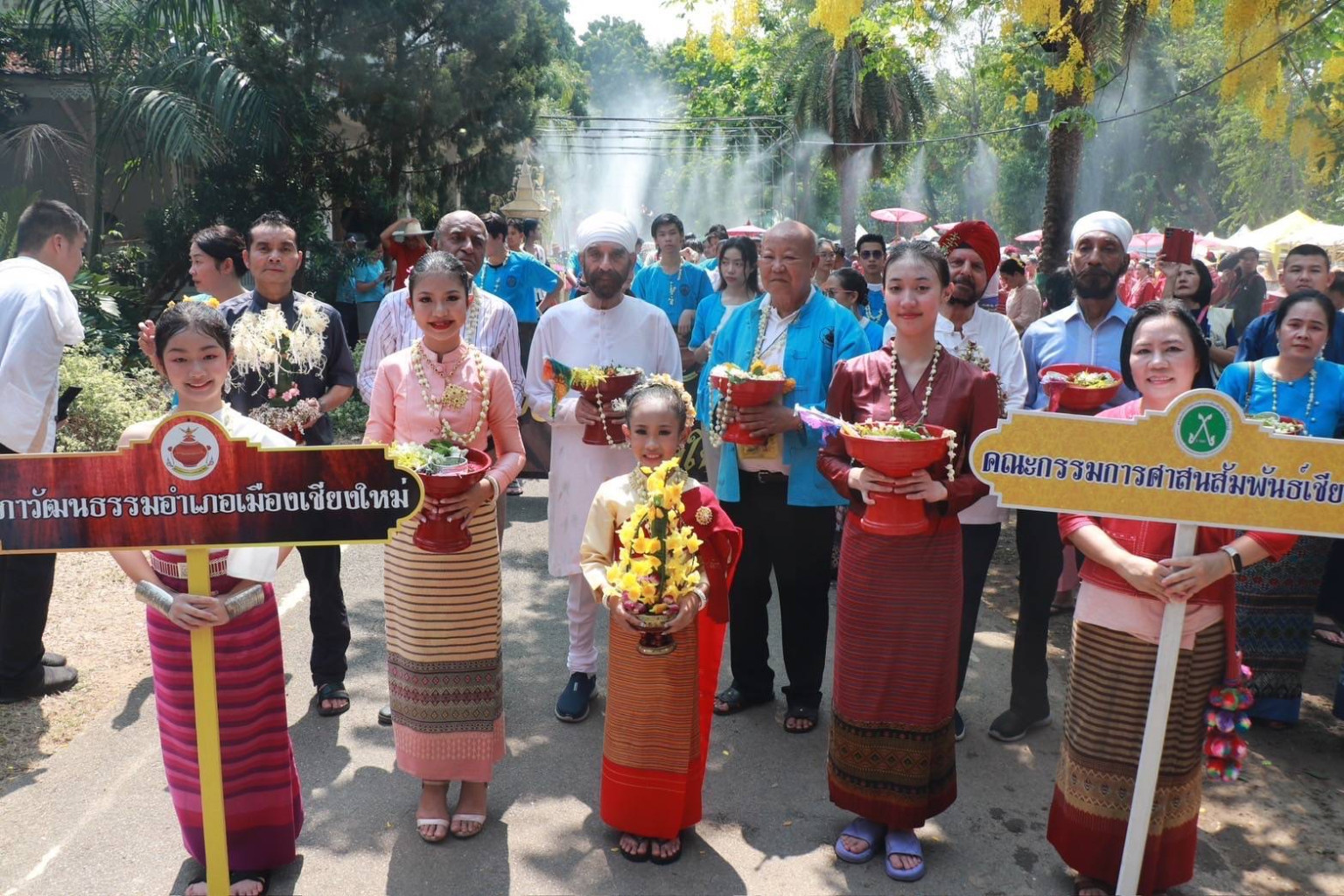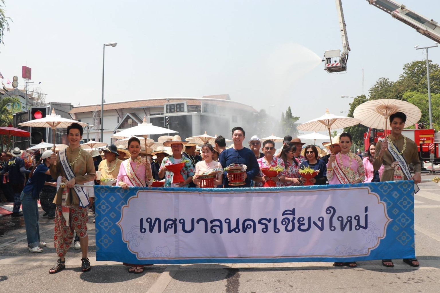 โดยจังหวัดเชียงใหม่ได้จัดริ้วขบวนแห่ของ 25 อำเภอ และหน่วยงานต่าง ๆ รวมทั้งสิ้นกว่า 30 ขบวน  นำเครื่องสระเกล้าดำหัวที่งดงามตามประเพณีแบบล้านนา เคลื่อนขบวนจากประตูท่าแพสู่จวนผู้ว่าราชการจังหวัดฯ เพื่อมารดน้ำขอพรจากผู้ว่าราชการจังหวัดฯ  ซึ่งถือเป็นธรรมเนียมปฏิบัติที่สืบต่อกันมาอย่างยาวนาน  นอกจากนี้ ยังมีการฟ้อนอวยพรจากคณะช่างฟ้อน และการแสดงของหน่วยงานต่างๆ ให้ผู้ที่มาร่วมงานได้รับชม  ทำให้บรรยากาศเต็มไปด้วยความอบอุ่นและสนุกสนาน