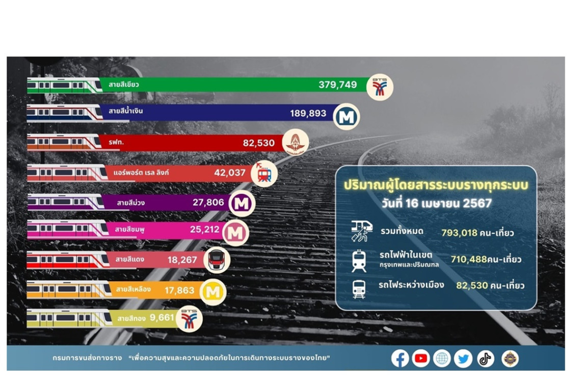 สงกรานต์ 6 วัน ยอดผู้เดินทางโดยขนส่งระบบรางทะลุ 6.5 ล้านคน เพิ่ม 21.22%
