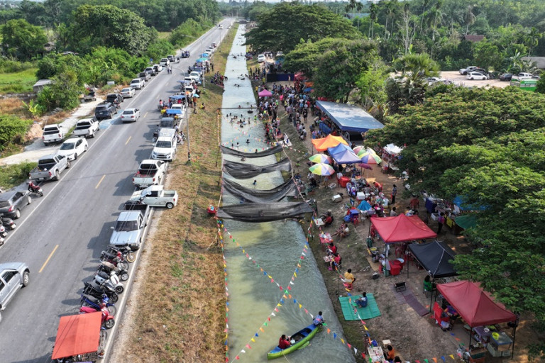 ผู้สื่อข่าวรายงานถึง คลองส่งน้ำ ของชลประทานบ้านค่าย ม.3 ต.หนองละลอก อ.บ้านค่าย จ.ระยอง ว่า มีผู้คนจำนวนมาก ไม่ว่าจะเด็กหรือผู้ใหญ่ ทุกเพศ ทุกวัย พากันมาเล่นน้ำ ลอยคอยกันอยู่ในคลองส่งน้ำอย่างสนุกสนาน เป็นการคลายร้อนแบบลูกทุ่ง และปีนี้ก็มีการจัดกิจกรรมสงกรานต์ควบคู่ไปด้วย เพื่อสร้างสีสันให้กับช่วงวันหยุดยาว เทศกาล