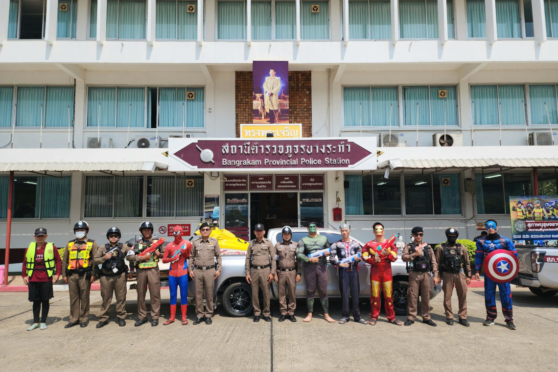 วันที่ 17 เมษายน 2567 เวลา 11.00 น. ผู้สื่อข่าวรายงานว่า พ.ต.อ.สมเกษม จารักษ์ ผกก.สภ.บางระกำ พร้อมด้วยพ.ต.ต.ทด ประทุมศิริ สวป.(ชส.)สภ.บางระกำ นำจ่าตุ๊กบางระกำ , ชุด ชมส.สภ.บางระกำ , ชุด BangrakamPoliceCare , ตำรวจแต่งธีมชุดอเวนเจอร์ ประกอบด้วย สไปเดอร์แมน, อัคยักษ์เขียว, ไอรอนแมน , กัปตันอเมริกา, ธอร์ค้อนสายฟ้า และ จัดชุดสายตรวจทางน้ำ ของ สภ.บางระกำ เตรียมความพร้อมเฝ้าระวังอุบัติเหตุทางน้ำ ช่วงเทศกาลสงกรานต์ 2567