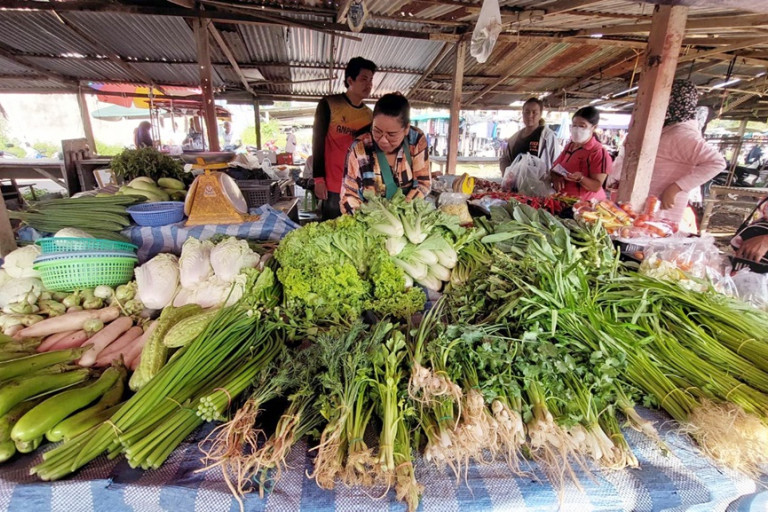 ชาวบ้านที่มาซื้อผักบอกว่า ตอนนี้ผักหลายชนิดแพงขึ้น เลยมาหาซื้อตามตลาดนัดคิดว่าราคาคงจะถูกกว่าตลาดใหญ่ แต่ราคาไม่แตกต่างกันมีผักบางชนิดที่คนในพื้นที่ปลูกนำมาขายจึงมีราคาถูกกว่าตลาดใหญ่ อย่างต้นหอม เมื่อก่อน  ราคา กก.ละ 60-70 บาท ตอนนี้ขึ้นเป็น กก.ละ 120 แต่เลือกซื้อแบบเป็นกำที่มีต้นหอม ผักชีกำละ 20 บาท ก็พอได้ทำกับข้าวแล้วถือว่ารับได้