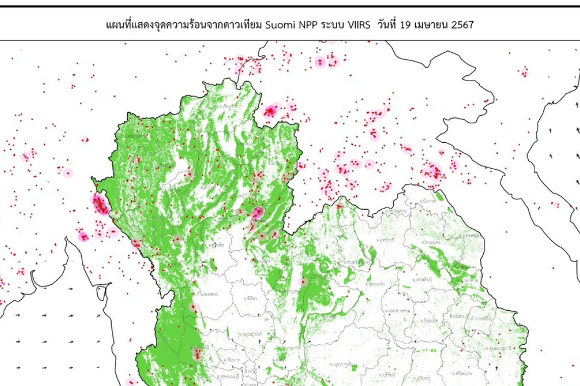 กระทรวงการอุดมศึกษา วิทยาศาสตร์ วิจัยและนวัตกรรม (อว.) โดยสำนักงานพัฒนาเทคโนโลยีอวกาศและภูมิสารสนเทศ (องค์การมหาชน) หรือ GISTDA เผยข้อมูลจากดาวเทียมซูโอมิ เอ็นพีพี (Suomi NPP) และจากดาวเทียมอีกหลายดวง เมื่อวันที่ 19 เมษายน 2567 ไทยพบจุดความร้อนทั้งประเทศ 572 จุด ข้อมูลจากดาวเทียมยังระบุอีกว่าจุดความร้อนที่เกิดขึ้นส่วนใหญ่พบในป่าอนุรักษ์ 267 จุด ตามด้วยป่าสงวนแห่งชาติ 223 จุด พื้นที่เกษตร 35 จุด ชุมชนและพื้นที่อื่นๆ 27 จุด เขต สปก. 19 จุด และพื้นที่ริมทางหลวง 1 จุด สำหรับจังหวัดที่พบจำนวนจุดความร้อนมากที่สุด คือ #อุตรดิตถ์ 93 จุด