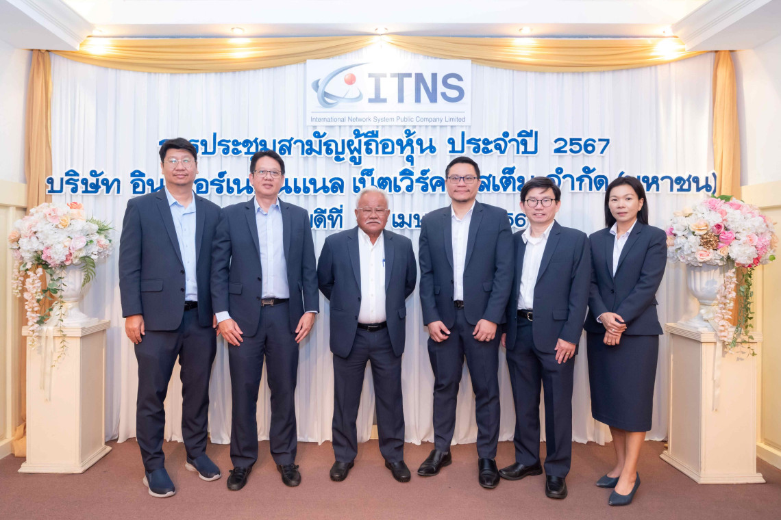 วุฒิพงษ์ โมฬีชาติ ประธานกรรมการ สมชาย อ่วมกระทุ่ม ประธานเจ้าหน้าที่บริหาร นาตยา นันทวนิช ประธานเจ้าหน้าที่ด้านการเงินและทรัพยากรมนุษย์ พร้อมด้วยคณะกรรมการ บริษัท อินเตอร์เนชั่นแนล เน็ตเวิร์ค ซิสเต็ม จำกัด (มหาชน) (ITNS) ถ่ายภาพร่วมกัน ภายหลังการประชุมสามัญผู้ถือหุ้นประจำปี 2567 โดยที่ประชุมมีมติเห็นชอบทุกวาระตามที่คณะกรรมการเสนอ รวมทั้งอนุมัติจ่ายเงินปันผลจากผลประกอบการปี 2566 ในอัตราหุ้นละ 0.124 บาท โดยกำหนดจ่ายในวันที่ 14 พฤษภาคม 2567 พร้อมอนุมัติเพิ่มวัตถุประสงค์บริษัทฯ ซึ่งงานดังกล่าวจัดขึ้น ณ ห้องไอยรา ตึกช้าง อาคาร บี ชั้นที่ 25