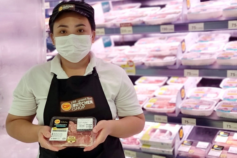 บริษัทยังเป็นหนึ่งในผู้นำการใช้พลาสติกที่ย่อยสลายได้ในประเทศไทย นำร่องใช้พลาสติกชีวภาพที่ผลิตจาก polylactic acid (PLA) ตั้งแต่ปี 2558 ในการผลิตถาดบรรจุหมูสดและไก่สดแช่เย็น การออกแบบบรรจุภัณฑ์สินค้าที่ง่ายต่อการรีไซเคิล โดยใช้บรรจุภัณฑ์ที่ทำจากพลาสติกฟิล์มชนิดเดียวกัน (Mono Plastic) ซึ่งเป็นนวัตกรรมที่สามารถรีไซเคิลได้ 100% โดยไม่ต้องแยกวัสดุต่างชนิดกัน นอกจากนี้ ยังมุ่งเพิ่มสัดส่วนวัสดุรีไซเคิลตามความเหมาะสม โดยไม่กระทบกับคุณภาพและความปลอดภัยของอาหาร อาทิ พัฒนาถาดไข่ไก่จากพลาสติกรีไซเคิล 100% โดยร่วมมือกับบริษัท พีทีที โกลบอล เคมิคอล จำกัด (มหาชน) หรือ PTTGC และบริษัทในเครือเอ็กซ์เซล (Excel Group) และการใช้ถาดไข่ไก่ที่ทำจากกระดาษรีไซเคิล 100% (สำหรับผลิตภัณฑ์ไข่ไก่เคจฟรี และถาดไข่ไก่ขนาด 30 ฟอง) เป็นต้น ส่งผลให้ใน 2566 สามารถลดการใช้พลาสติกใหม่ได้มากกว่า 1,000 ตัน