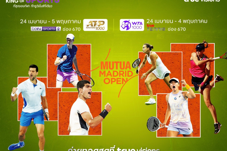 ทรูวิชั่นส์ ตอกย้ำการเป็นผู้นำคอนเทนต์กีฬาระดับโลก พร้อมนำเสนอการถ่ายทอดสดเทนนิสชายระดับเอทีพี 1000 และเทนนิสหญิงระดับ ดับเบิลยูทีเอ 1000 รายการมาดริด โอเพน ซึ่งเป็นการแข่งขันรายการใหญ่พร้อมกันทั้งประเภทชาย และประเภทหญิง ทรูวิชั่นส์ และทรูวิชั่นส์ นาว ถ่ายทอดสดแบบสุดเอ็กซ์คลูซีฟ ตั้งแต่วันที่ 24 เมษายน – 5 พฤษภาคมนี้ ทางช่อง beIN Sport 2 (608) และ True Tennis HD (670)