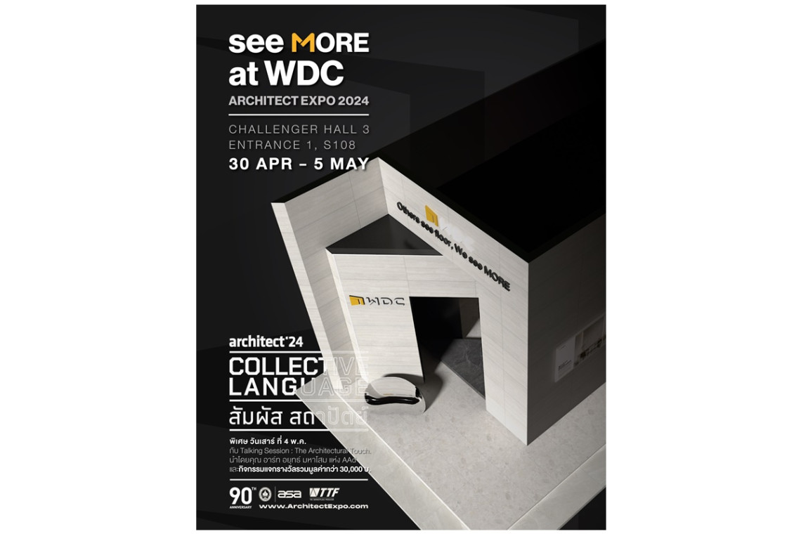 บริษัท เวสเทิร์น เดคอร์ คอร์ปอเรชั่น จำกัด (มหาชน) หรือ ดับบลิวดีซี (WDC) ผู้นำเข้าและจัดจำหน่ายผลิตภัณฑ์วัสดุตกแต่งพื้นและผนังระดับพรีเมียม ร่วมออกบูธในงานสถาปนิก’67 กับคอนเซ็ปต์ The Futuristic Touch “สัมผัสของกระเบื้องแห่งอนาคต” มาในรูปแบบของสถาปัตยกรรมที่มีความโดดเด่น สง่างาม กรุพื้นผิวภายนอกเกือบทั้งหมดด้วยสินค้าไฮไลท์ของปีนี้ พร้อมเปิดประสบการณ์ในการใช้งานกระเบื้องที่มีรูปแบบของผิวที่คล้ายคลึงกับหินธรรมชาติผ่านทางเทคโนโลยีพิเศษสุดล้ำสมัย