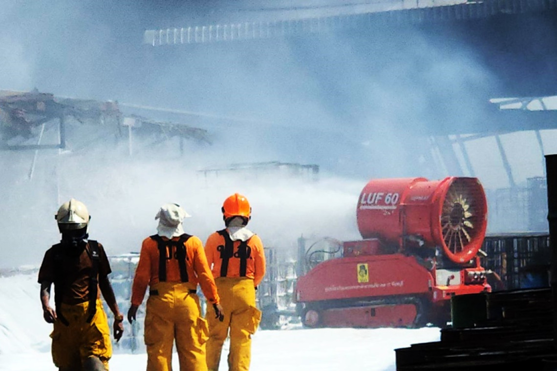 วันที่ 23 เม.ย.67 ผู้สื่อข่าวรายงานความคืบหน้ากรณีเพลิงไหม้โรงงานเก็บกากสารเคมีอุตสาหกรรม บ.วินโพรเสส ม.4 ต.บางบุตร อ.บ้านค่าย จ.ระยอง เกิดมีไฟประทุลุกไหม้ถังสารเคมีทรงสีเหลี่ยมอยู่ในกรงเหล็กวางอยู่กับพื้นอยู่ใกล้กับโรงเก็บสารเคมีที่ 5 โดยเจ้าหน้าที่กู้ภัย และดับเพลิง เดินสำรวจไปเจอ จึงได้นำรดับเพลิงด้วยโฟมเข้าไปฉีดสกัดใช้เวลา 10 นาที จึงสามารถดับได้ ซึ่งเจ้าหน้าที่ต้องคอยเฝ้าระวัง และสังเกตควันไฟ ซึ่งอาจมีบางจุดที่ไฟอาจจะประทุขึ้นมาอีก ขณะที่สถานการณ์ภายในโรงเก็บสารเคมียังมีควันไฟให้เห็น ส่วนบ่อเก็บสารเคมีที่มีกว่า 30 บ่อ เจ้าหน้าที่ได้ฉีดโฟมคลุมไว้ ซึ่งไม่มั่นใจว่าจะคลุมได้นานขนาดไหน