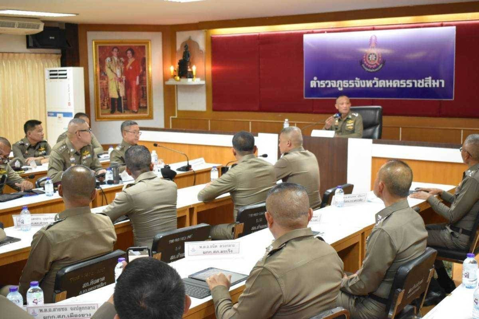 โดยมี พล.ต.ต.ณรงค์ฤทธิ์ ด่านสุวรรณ์ ผบก. ภ.จว.นครราชสีมา, รอง ผบก.ภ.จว. นครราชสีมา, หน.สภ.ในสังกัด, พ.ต.อ.พงศ์ชิต พุ่มชุมพล ผกก.ฝอ. ภ.จว.นครราชสีมา, พ.ต.อ.สมร ทองกลาง ผกก.(สอบสวน) กลุ่มงานสอบสวน, ว่าที่พ.ต.อ.พรเทพ ทุ้ยแป ผกก.สืบสวน ภ.จว.นครราชสีมา และเจ้าหน้าที่ที่เกี่ยวข้องเข้าร่วมประชุม ณ ห้องประชุมไทรทอง ภ.จว.นครราชสีมา