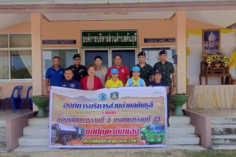 นายสมานพันธ์ รักษ์ประสงค์ นายกอบต.คันธุลี เปิดเผยว่า “วันนี้ได้ประชุมร่วมกับหน่วยทหาร ร.25 พัน .3 สัสดีอำเภอท่าชนะ,จิตอาสา 904 และภาคีร่วม เพื่อหารือแนวทางในการช่วยเหลือประชาชนที่เดือดร้อนในพื้นที่ตำบลคันธุลี เพื่อขอความร่วมมือเข้าโครงการ “ราษฎร์ รัฐ ร่วมใจ ช่วยภัยแล้ง” จากกองทัพบก ที่พร้อมช่วยเหลือประชาชน จากการหารือหน่วยทหาร จะเข้าประจำการวันที่ 22-26 เมษายน ห้วงเวลา ครั้งละ 3-5 วัน พำนักในพื้นที่ อบต.คันธุลีเพื่ออำนวยความสะดวกไม่ต้องเดินทางไปกลับหน่วย พร้อมด้วย รถบรรทุกน้ำ 1 คัน ขนาดความจุ 6000 ลิตร กำลังพลจำนวน 4 นาย โดยทางอบต.คันธุลีได้สนับสนุนเชื้อเพลิง ที่พัก และอาหารในการปฏิบัติหน้าที่ในครั้งนี้ จนกว่าสถานการณ์ภัยแล้งจะเข้าสู่สภาวะปกติ จึงขอขอบคุณทุกภาคีเครือข่ายที่ร่วมด้วยช่วยกัน” นายสมานพันธ์ รักษ์ประสงค์ นายกอบต.คันธุลี กล่าว