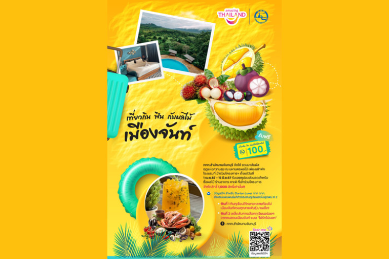 ในช่วงฤดูกาลผลไม้เช่นนี้ ทาง ททท. ชี้พิกัดกิจกรรมและรวบรวมโปรโมชันเอาใจผู้ชื่นชอบผลไม้ไว้เพียบ อย่างจังหวัดจันทบุรี เพียงเข้าพักโรงแรมที่เข้าร่วมโครงการฯ รับคูปองส่วนลด 100 บาท สำหรับสวนผลไม้ ร้านอาหาร คาเฟ่ ตั้งแต่วันนี้ ที่ 1 เม.ย. - 15 มิถุนายน 2567 (มีจำกัด 1,000 สิทธิ์เท่านั้น) สอบถามข้อมูลเพิ่มเติมได้ที่ ททท.สำนักงานจันทบุรี โทร. 0 3948 0220 หรือ Facebook page: ททท.สำนักงานจันทบุรี