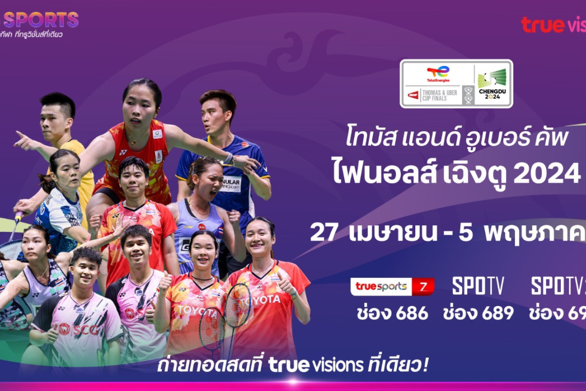 ทรูวิชั่นส์ ตอกย้ำการเป็นผู้นำคอนเทนต์กีฬาระดับโลก มอบโปรแกรมใหญ่โปรแกรมเด็ด ส่งท้ายเดือนเมษายน กับแบดมินตันชิงแชมป์โลกประเภททีมชาย และทีมหญิง รายการ โทมัส แอนด์ อูเบอร์ คัพ ไฟนอลส์ 2024 ที่เฉิงตู ประเทศจีน ร่วมเชียร์ทีมแบดมินตันของไทยทั้งทีมชาย และทีมหญิง ให้กำลังใจในการสู้เพื่อชัยชนะ ด้วยเกียรติยศ และศักดิ์ศรี สด สุดเอ็กซ์คลูซีฟ แบบเต็มอิ่ม เริ่ม 27 เมษายน - 5 พฤษภาคม นี้ ทาง True Sports7 (686), SPOTV (689) และ SPOTV2 (690)