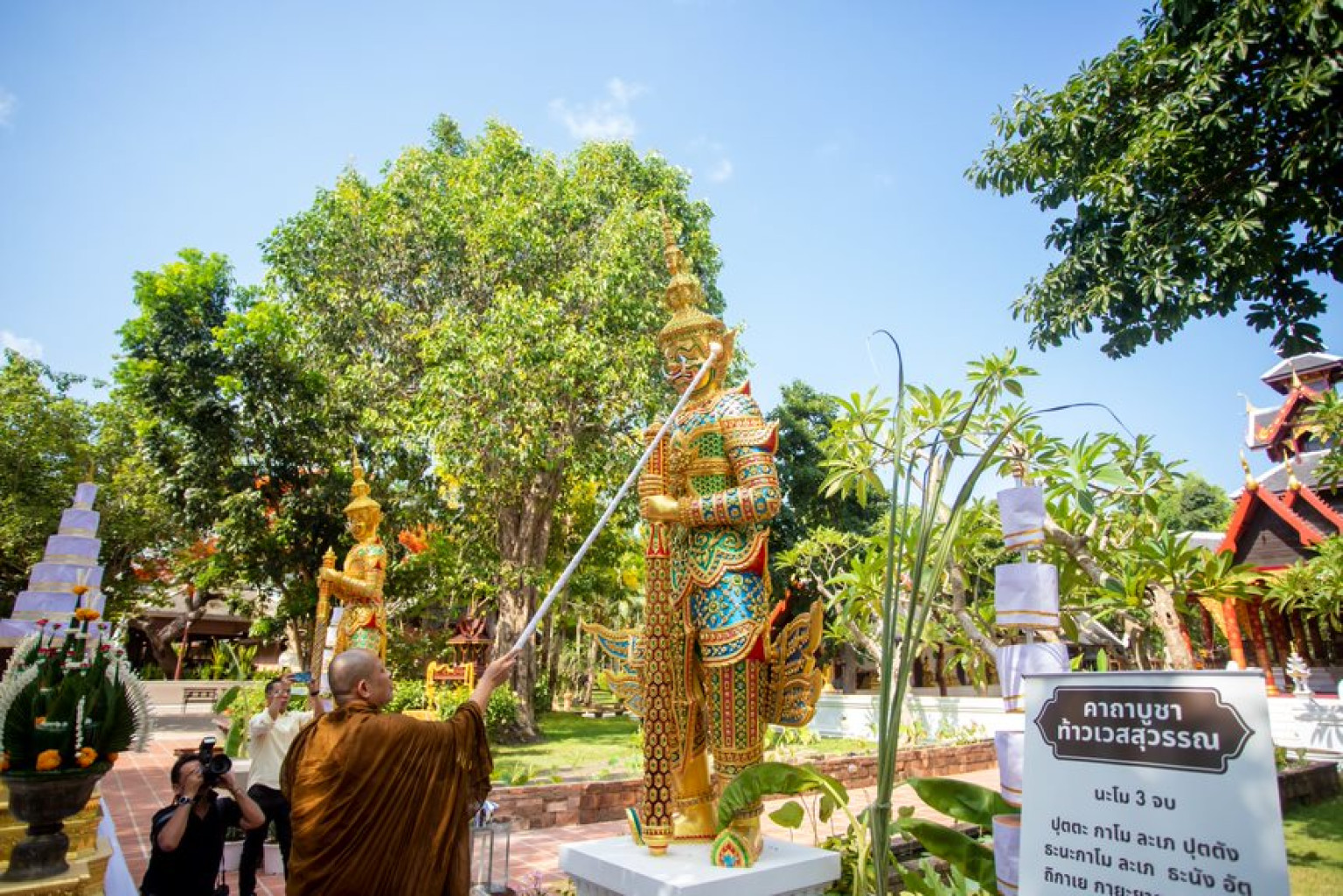 ผู้สื่อข่าวรายงาน ว่า นางสาว จตุพร พิศาลวาเลิศ ผู้บริหารไทธานี หมู่บ้านวัฒนธรรมและศิลปะ พัทยา พร้อมด้วย เจ้าหน้าที่ไทธานี หมู่บ้านวัฒนธรรมและศิลปะ พัทยา ร่วมจัดบวงสรวงเบิกเนตรองค์ องค์ท้าวเวสสุวรรณ ความสูง 3.50 เมตรเพื่อความเป็นสิริมงคล และร่วมทอดผ้าป่าสามัคคี เพื่อสมทบทุนสร้างพระนั่งเมืองสูง 168 เมตร วัดพุทธวนาราม (วัดป่าวังน้ำเย็น) ตำบลเกิ้ง อำเภอเมือง จังหวัดมหาสารคาม โดยมี พระวชิรญาณวิศิษฏ์ วิ. ( พระอาจารย์สุริยันต์ โฆสปัญโญ) เป็นประธานประกอบพิธี ซึ่งมีแขกผู้มีเกียรติ อาทิ นางศุภาวี บำรุงศักดิ์ วัฒนธรรมจังหวัดชลบุรี นักธุรกิจ แบะผู้มีจิตศรัทธา เข้าร่วมพิธี