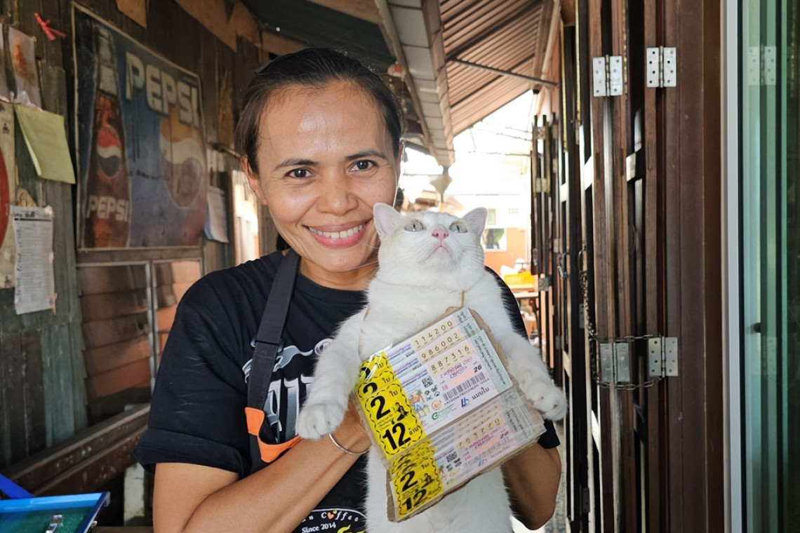 และด้วยความที่ทางร้านก็ขายลอตเตอรี่เป็นรายได้เสริมด้วยเช่นกัน พอเห็นบ่อยๆว่ามะรุมชอบแผงลอตเตอรี่มาก ๆ จึงเกิดไอเดียทำแผงล็อตเตอรี่จิ๋วขนาดพอดีกับมะรุม สามารถใส่ลอตเตอรี่ชุดได้ ประมาณ 6 ชุด เป็นแผงพิเศษให้น้องคล้องคอให้น้องช่วยขายที่ร้าน พร้อมกับถ่ายภาพมะรุมพร้อมแผงจิ๋ว โพสต์ลงบนสื่อออนไลน์ส่วนตัว ปรากฏว่า มักจะมีเพื่อน ๆ ลูกค้า ที่เอ็นดูน้อง เข้ามาช่วยซื้อเป็นจำนวนมาก แต่หากลูกค้ามาซื้อที่ร้าน มักจะใช้มือชี้ถามมะรุมว่าใบไหนถูกรางวัล มะรุมก็จะใช้วิธีกระพริบตา หรือบางรายมะรุมจะใช้มือเขี่ยเลขให้ เป็นที่ถูกใจลูกค้า ซึ่งแผงของมะรุม ใส่ล็อตเตอรี่ได้ 6 คู่นี้ ใช้เวลาไม่กี่วันก็ขายหมด ซึ่งตนมักจะโพสต์ภาพมะรุมเป็นประจำ เรียกได้ว่าตอนนี้ มะรุม กลายเป็นขวัญใจโซเชี่ยล ทั้งนี้ที่ร้านจะจำหน่ายล็อตเตอรี่ จำนวน 3 เล่ม ตนชอบพูดกับน้องมะรุมว่า น้องต้องช่วยแม่ขายของนะ เพราะช่วงนี้ค่าไฟแพงแพงมาก ค่าไฟเกือบจะผ่อนค่าบ้านได้อยู่แล้ว