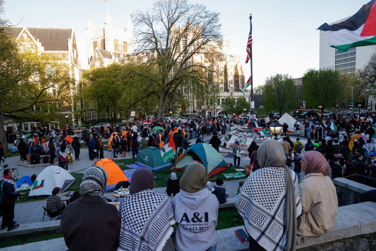 สำนักข่าวต่างประเทศรายงานว่า เกิดการเผชิญหน้ากันระหว่างกลุ่มผู้สนับสนุนอิสราเอล กับกลุ่มผู้สนับสนุนปาเลสไตน์ ซึ่งทั้งสองฝ่ายต่างตั้งเวทีปราศรัย และกางเต็นท์ค้างแรมในมหาวิทยาลัยแคลิฟอร์เนีย ลอสแอนเจลิส หรือยูซีแอลเอ ประเทศสหรัฐฯ