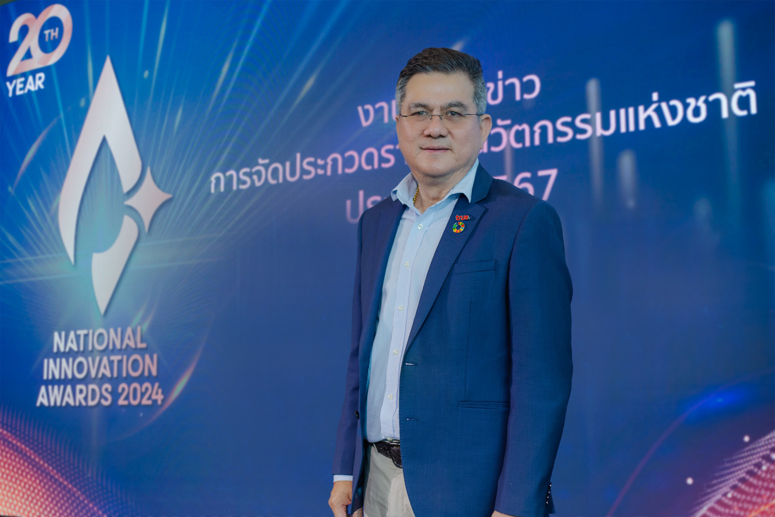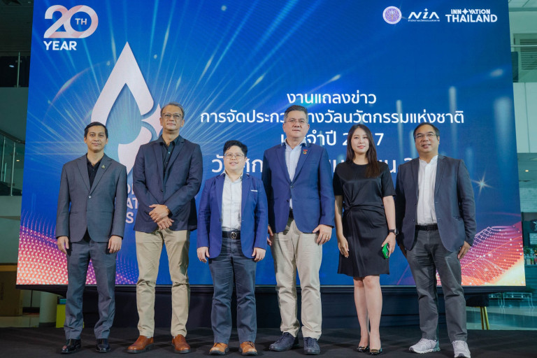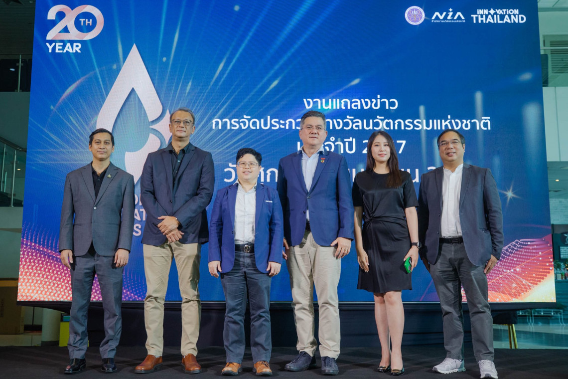 ในโอกาสครบรอบปีที่ 20 ของการจัดการประกวด “รางวัลนวัตกรรมแห่งชาติ”…สำนักงานนวัตกรรมแห่งชาติ (องค์การมหาชน) โดย ดร.กริชผกา บุญเฟื่อง (ที่ 3 จากซ้าย) ผู้อำนวยการสำนักงานฯ และองค์กรชั้นนำต้นแบบที่ได้รับรางวัลนวัตกรรมแห่งชาติในปีต่างๆ ด้วยผลงานอันโดดเด่นและก่อประโยชน์แก่ประเทศอย่างเป็นรูปธรรม ซึ่งรวมถึงบมจ. ทรู คอร์ปอเรชั่น นำโดย นายจักรกฤษณ์ อุไรรัตน์ (ที่ 3 จากขวา) หัวหน้าคณะผู้บริหารด้านกิจการองค์กร บมจ. ทรู คอร์ปอเรชั่น ร่วมแถลงข่าวการจัดประกวดรางวัลนวัตกรรมแห่งชาติ ประจำปี 2657 พร้อมแบ่งปันมุมมองและประสบการณ์ด้านอินโนเวชั่น ในหัวข้อ “รางวัลนวัตกรรมแห่งชาติ กับการสร้างความตื่นตัวด้านนวัตกรรมขึ้นในองค์กรทุกภาคส่วนของประเทศไทย” ณ สำนักงานนวัตกรรมแห่งชาติ (องค์การมหาชน) กระทรวงการอุดมศึกษา วิทยาศาสตร์ วิจัยและนวัตกรรม (อว.)