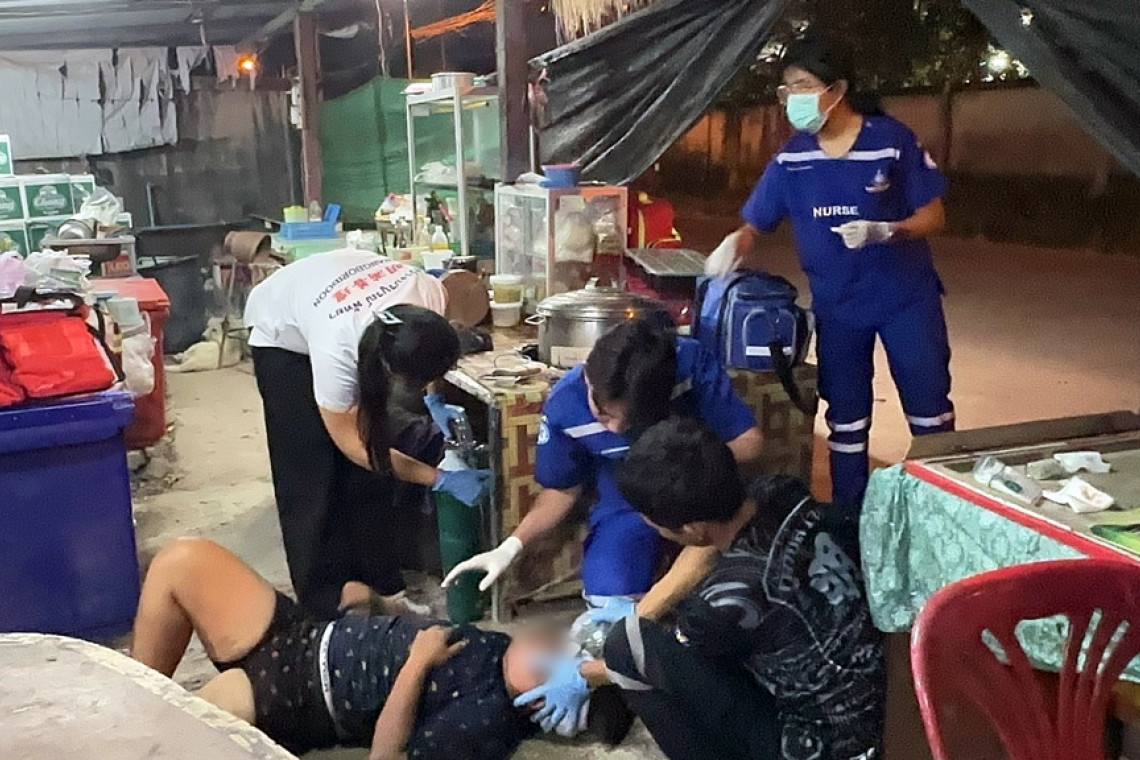 สอบถามนางประคอง อายุ 63 ปี แม่ค้าขายอาหารตามสั่ง เล่าว่า ผู้บาดเจ็บเป็นทอม ทำงานอยู่อู่ซ่อมรถ ตอนนั้นป้าก็กำลังทำกับข้าวให้ลูกค้าอยู่ คนเจ็บก็เดินมาที่ร้านลักษณะเมาสุรา มาถึงก็มาเอะโวยวาย แล้วไปด่าถึงบุพการีลูกค้าที่เป็นผู้ชายที่มานั่งกินข้าวอยู่ จนทนไม่ไหวลุกขึ้นมา ตบและเตะ จนล้มหัวฟาดพื้นนอนชักดิ้นชักงอน้ำลายฟูมปาก ส่วนผู้ก่อเหตุก็เดินหายไป จึงรีบโทรแจ้ง เจ้าหน้าที่กู้ภัยเข้ามาช่วยเหลือ