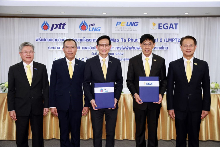 นายอรรถพล ฤกษ์พิบูลย์ ประธานเจ้าหน้าที่บริหารและกรรมการผู้จัดการใหญ่ ปตท. พร้อมด้วย นายวุฒิกร สติฐิต ประธานเจ้าหน้าที่ปฏิบัติการกลุ่มธุรกิจปิโตรเลียมขั้นต้นและก๊าซธรรมชาติ ปตท. ในฐานะประธานกรรมการ PTTLNG และ นายเทพรัตน์ เทพพิทักษ์ ผู้ว่าการ กฟผ. นายรัตติกูล ปิยะวงค์วาณิชย์ กรรมการผู้จัดการใหญ่ บริษัท พีทีที แอลเอ็นจี จำกัด ผู้บริหารกลุ่ม ปตท. และ กฟผ. ประกาศความสำเร็จการซื้อขายหุ้นบริษัท พีอี แอลเอ็นจี จำกัด (PE LNG) เพื่อดำเนินโครงการ LNG Map Ta Phut Terminal 2 (LMPT2) ระหว่าง บริษัท พีทีที แอลเอ็นจี จำกัด และ การไฟฟ้าฝ่ายผลิตแห่งประเทศไทย (กฟผ.) โดย PTTLNG และ กฟผ. จะถือหุ้นในสัดส่วนที่เท่ากัน พร้อมสนับสนุนนโยบายของรัฐบาลในการเปิดเสรีธุรกิจก๊าซธรรมชาติ เสริมความมั่นคงทางพลังงานให้แก่ประเทศ อีกทั้งเป็นการแสวงหาโอกาสความร่วมมือและการลงทุนร่วมกันในอนาคตต่อไป