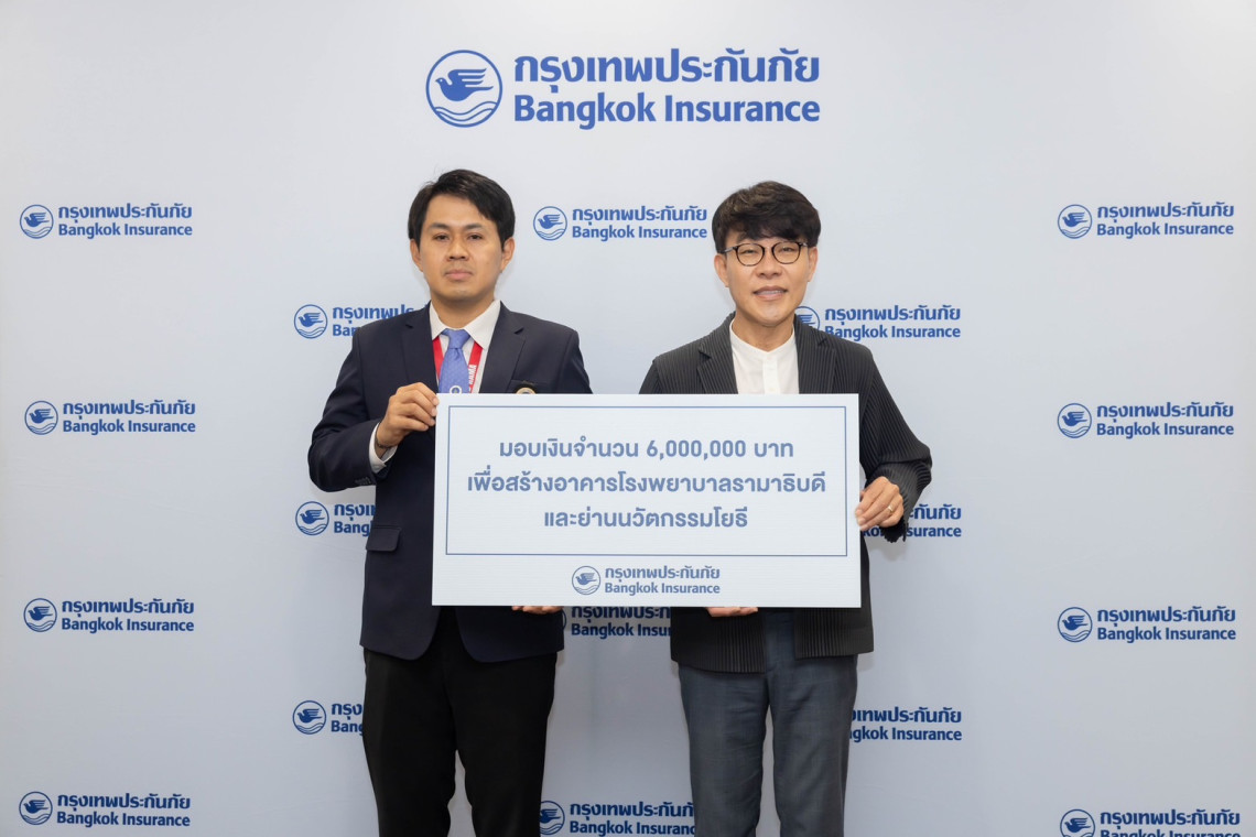 ดร.อภิสิทธิ์ อนันตนาถรัตน (ขวา) ประธานคณะผู้บริหารและกรรมการผู้อำนวยการใหญ่ บริษัท กรุงเทพประกันภัย จำกัด (มหาชน) มอบเงินบริจาคเพื่อร่วมสร้างอาคารโรงพยาบาลรามาธิบดีและย่านนวัตกรรมโยธี ทดแทนอาคารเดิมที่มีสภาพทรุดโทรมและแออัด จำนวน 6,000,000 บาท โดยมี รศ.ดร.นพ.ไชยพร ยุกเซ็น (ซ้าย) กรรมการบริหารมูลนิธิรามาธิบดี เป็นผู้แทนรับมอบ อาคารหลังใหม่นี้สามารถรองรับผู้ป่วยได้เต็มศักยภาพและมีประสิทธิภาพมากกว่า นอกจากนี้ ยังเป็นห้องเรียนและแหล่งค้นคว้าวิจัยที่ผลิตบุคลากรทางการแพทย์ผู้เชี่ยวชาญในการรักษาโรคที่มีความซับซ้อน และเป็นย่านนวัตกรรมการแพทย์โยธี (YMID) ศูนย์รวมนักวิทยาศาสตร์และนักวิจัยจากการผนึกกำลังกับเครือข่ายการแพทย์และวิทยาศาสตร์สุขภาพ เพื่อร่วมพัฒนาต่อยอดในด้านสาธารณสุขของประเทศให้มีศักยภาพในระดับสากล สามารถแข่งขันได้ และเตรียมความพร้อมเข้าสู่ประชาคมเศรษฐกิจอาเซียน ณ อาคารกรุงเทพประกันภัย สำนักงานใหญ่ ถนนสาทรใต้ เมื่อวันที่ 3 พฤษภาคม 2567