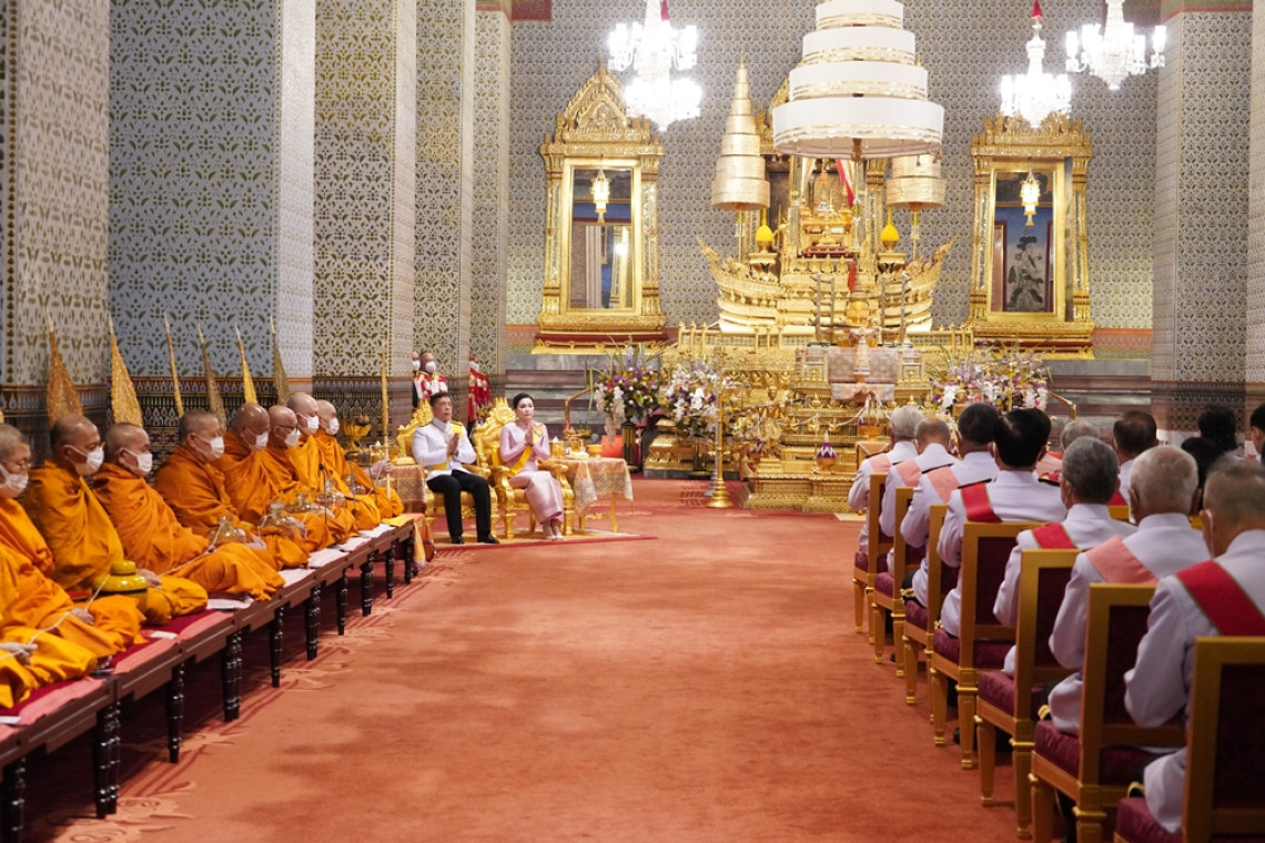 พระบาทสมเด็จพระเจ้าอยู่หัว เสด็จพระราชดำเนินไปทรงกราบพระพุทธปฏิมาชัยวัฒน์ รัชกาลที่ ๑ ถึงรัชกาลที่ ๗ และรัชกาลที่ ๙ ที่หน้าพระที่นั่งบุษบกมาลา ทรงรับการถวายความเคารพของผู้มาเฝ้าทูลละอองธุลีพระบาท แล้วเสด็จออกจากพระที่นั่งอมรินทรวินิจฉัย ประทับรถยนต์พระที่นั่ง เสด็จพระราชดำเนินกลับ