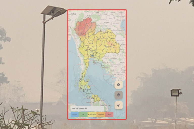 กระทรวงการอุดมศึกษา วิทยาศาสตร์ วิจัยและนวัตกรรม (อว.) โดยสำนักงานพัฒนาเทคโนโลยีอวกาศและภูมิสารสนเทศ (องค์การมหาชน) หรือ GISTDA ร่วมกับสำนักงานการวิจัยแห่งชาติ, กรมควบคุมมลพิษ, มหาวิทยาลัยเกษตรศาสตร์ และมหาวิทยาลัยเชียงใหม่ เกาะติดสถานการณ์ฝุ่น PM 2.5 แบบรายชั่วโมง ด้วยข้อมูลจากดาวเทียมผ่านแอปพลิเคชั่น “เช็คฝุ่น” เมื่อเวลา 08.00 น. ของวันที่ 4 พฤษภาคม 2567 พบ 6 จังหวัด มีค่าฝุ่นเกินเกณฑ์มาตรฐานในระดับสีแดงที่มีผลกระทบต่อสุขภาพและระบบทางเดินหายใจ คือ #ลำพูน 115.6 ไมโครกรัม #เชียงราย 115.5 ไมโครกรัม #เชียงใหม่ 100.6 ไมโครกรัม #ลำปาง 89.5 ไมโครกรัม #พะเยา 89 ไมโครกรัม #แม่ฮ่องสอน 85.3 ไมโครกรัม ส่วนอีก 29 จังหวัด พบคุณภาพอากาศเกินมาตรฐานในระดับสีส้ม กระจายอยู่ทั่วทุกภูมิภาค
