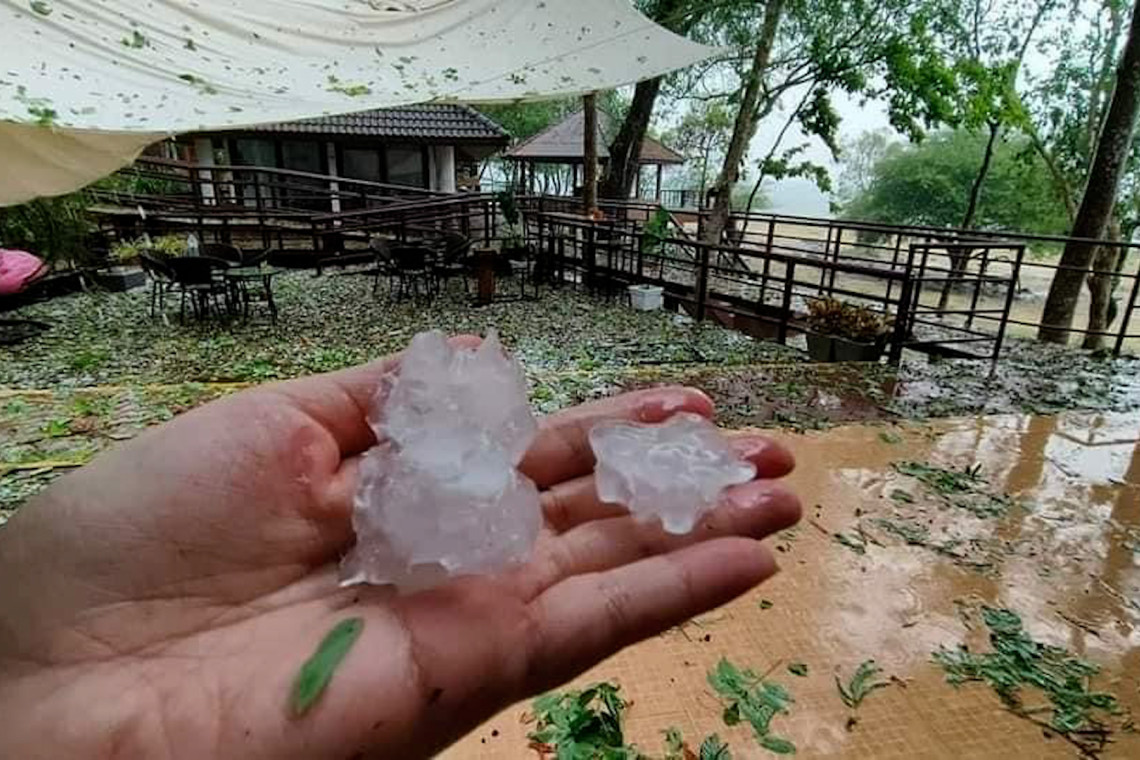 เมื่อเวลา 17.00 น. วันที่ 4 พ.ค. 2567 ผู้สื่อข่าวรายงานว่าเมื่อช่วงเย็นที่ผ่านมาบนอุทยานแห่งชาติน้ำพอง ทางฝั่ง เขื่อนอุบลรัตน์ อ.อุบลรัตน์ จ.ขอนแก่น ได้เกิดพายุฝนฟ้าคะนองและลมกรรโชกแรงตกลงมาอย่างหนัก และมีลูกเห็บตกลงมา จนขาวเกือบเต็มพื้น ขนาดเท่านิ้วหัวแม่มือ ก่อนที่จะมีฝนตกลงมาอย่างหนักและมีลมกระโชกแรงจนมีต้นไม้ใหญ่หักโค่นขวางถนนเส้นรอบเขื่อนอุบลรัตน์ - บ้านฝาง ขึ้นถนนมะลิวรรณ โดยทางเจ้าหน้าที่ที่เกี่ยวข้องได้ดำเนินการตัดต้นไม้เปิดการจราจร ให้สามารถสัญจรได้ตามปกติแล้ว