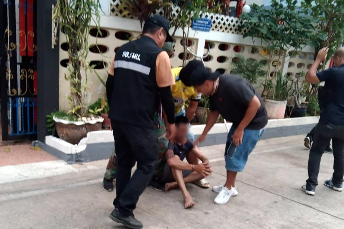 ในที่เกิดเหตุ พบนายจิรายุ อายุ 28 ปี มีอาการคลุ้มคลั่ง อยู่ในบ้านหลังหนึ่ง ม.5 ต.ปากแพรก อ.เมือง จ.กาญจนบุรี โดยมีเสียงตะโกนดังโวยถือดาบซามูไร ทำท่าทีเกรียวกราดพร้อมที่จะอาระวาดทำร้ายบุคคลใกล้เคียง