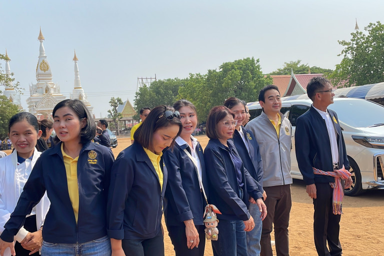 วันที่ 6 พ.ค.2567 ผู้สื่อข่าวรายงานว่า ทั้งนี้เป็นที่น่าสังเกตว่า จุดที่วัดท่าสะแบง ตำบลมะบ้า อำเภอเสลภูมิ จังหวัดร้อยเอ็ด ซึ่งนายเศรษฐา ทวีสิน นายกรัฐมนตรี และคณะลงพื้นที่ มีสส.ของพรรคเพื่อไทย ให้การต้อนรับ แต่ปรากฏว่านางสุภาพร สลับศรี สส.ยโสธร พรรคไทยสร้างไทย (ทสท.) มายืนรอร่วมต้อนรับนายกฯ ร่วมกับสส.พรรคเพื่อไทยด้วย