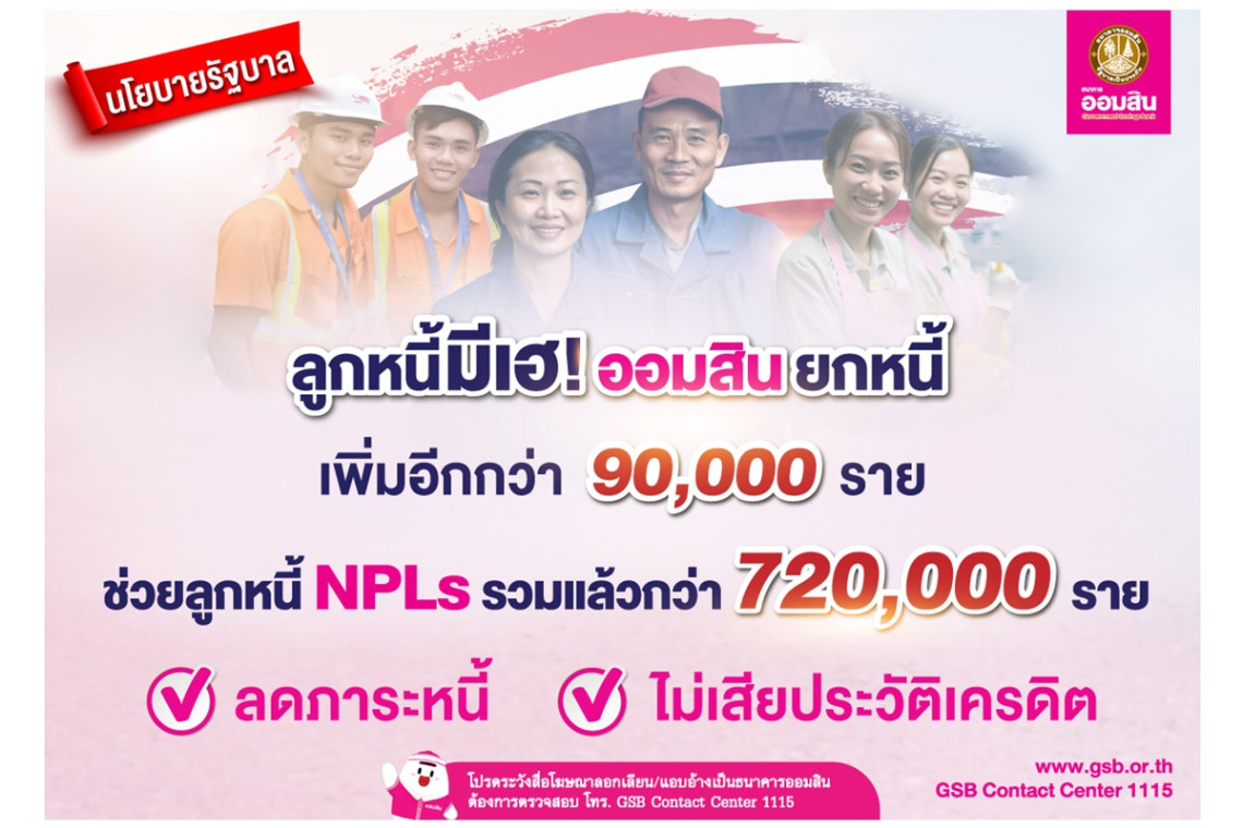 "ออมสิน" ยกหนี้เพิ่มอีก 90,000 ราย ช่วยลูกหนี้ NPLs สินเชื่อโควิด-19 ตามนโยบายรัฐ เพียง 3 เดือน มีผู้ได้ปลดหนี้แล้วกว่า 720,000 ราย