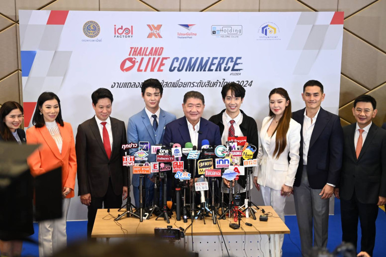 วันที่ 8 พฤษภาคม 2567 เวลา 17.30 น. ที่กระทรวงพาณิชย์ นายภูมิธรรม เวชยชัย รองนายกรัฐมนตรีและรัฐมนตรีว่าการกระทรวงพาณิชย์ แถลงข่าวไลฟ์สดเพื่อยกระดับสินค้าไทย เปิดกิจกรรม Thailand Live Commerce 2024 ร่วมกับผู้บริหารไปรษณีย์ไทย สมาคมการค้าอินฟลูเอนเซอร์ไทย (TITA) ผู้บริหาร XMCN ผู้บริหารและอินฟลูเอนเซอร์จากบริษัท Idol Factory และบริษัท 945 โฮลดิ้ง จำกัด ในช่วงระหว่างวันที่ 13-17 พ.ค.นี้ผ่านแพลตฟอร์ม TikTok เพื่อพัฒนาผู้ประกอบการและสร้างอาชีพใหม่ให้ใครก็ได้สามารถพัฒนาทักษะทำไลฟ์สดขายของ ช่วยขับเคลื่อนเศรษฐกิจ สร้างระบบนิเวศการค้าออนไลน์ เจาะตลาดอาเซียน และตลาดจีนในอนาคต ซึ่งภายในงานมีอินฟลูเอนเซอร์ดังอย่าง สงกรานต์ เตชะณรงค์ มายด์ ณภศศิ สุรวรรณ ผู้ใหญ่บ้านฟินแลนด์ (บิ๊ก ธิติวุฒิ วารุณ) เบ๊บ ธนทัต พรรณวิริยะกุล กับ บิลลี่ ภัทรชนน อ่อนสอาด และเฮง อัศวฤทธิ์ พินิตกาญจนพันธุ นักแสดงซีรีส์วายจากบริษัท ไอดอลแฟคทอรี่ จำกัด ร่วมด้วย