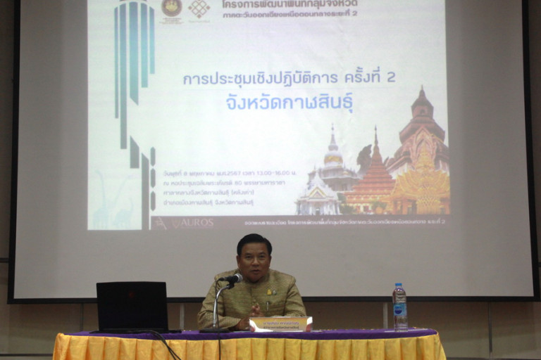 ด้านนายสนั่น พงษ์อักษร ผวจ.กาฬสินธุ์ กล่าวว่า การประชุมเชิงปฏิบัติการ ครั้งที่ 2 นี้ ถือเป็นหนึ่งเครื่องมือที่สำคัญที่จะช่วยระดมความคิดเห็น ข้อเสนอแนะจากผู้แทนทุกภาคส่วนที่เกี่ยวข้อง เกี่ยวกับการพัฒนาเชิงพื้นที่ เพื่อให้ตรงต่อความต้องการและความคาดหวังของพื้นที่ เพื่อกำหนดแนวทางพัฒนาพื้นที่ให้มีความเหมาะสม มีระบบการบริการขั้นพื้นฐานที่สมบูรณ์และได้มาตรฐาน ส่งเสริมศักยภาพให้เหมาะสมตามนโยบายของรัฐบาล โดยคำนึงถึงลักษณะเฉพาะทางกายภาพ เศรษฐกิจ สังคม และวัฒนธรรมของพื้นที่เป็นหลัก
