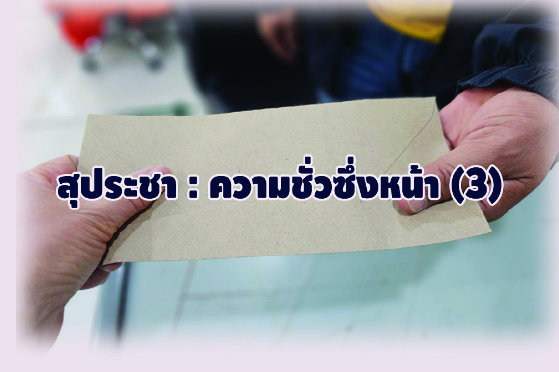 การได้ไปติดต่อกับส่วนราชการ ทำให้เขาได้รู้ว่าข้าราชการทั้งหลายนั้น “ทำงานสบาย ๆ มีรายได้เยอะ ๆ” กันทั้งสิ้น คืองานที่ทำก็ไม่ได้มีความยุ่งยากอะไร เพราะมีขั้นตอนและระเบียบต่าง ๆ วางไว้เป็นที่เรียบร้อย เพียงแต่พอมีชาวบ้านหรือเอกชนไปติดต่อ ก็จะ “แสดง” ปัญหาและความยุ่งยากต่าง ๆ ออกมาให้เยอะ ๆ ที่ง่ายที่สุดก็คือใช้เวลาให้เยอะ ๆ และทำให้ดูเหมือนว่ามีขั้นตอนมากมาย ตั้งแต่การใช้เอกสารที่บางครั้งก็ไม่เข้าใจว่าทำไมต้องมีหลายชิ้นหลายสำเนา เพราะถ้าต้องพิมพ์หรือถ่ายสำเนาเพิ่ม ไม่เพียงแต่ต้องมีค่าใช้จ่ายเพิ่มขึ้นก็ต้องเสียเวลามากขึ้นอีก รวมถึงที่ทำมีว่าเดินเอาเอกสารไปให้คนโน้นคนนี้เซ็น ก็จะทำท่าว่ามีปัญหาตรงโน้นตรงนี้ รวมทั้งที่นินทาว่าเจ้านายคนโน้นคนนี้จะเอาอย่างนั้นอย่างนี้ ดูยุ่งเหยิงไปหมด ต่อมาประชาสังเกตเห็นว่ามีคนของบางบริษัทเอาขนมบ้าง ของกินบ้าง รวมถึงข้าวของบางอย่างที่ใส่ถุงใส่ห่ออย่างมิดชิด(ตลอดจน “ซอง”)ยื่นหรือแอบมอบให้กับเจ้าหน้าที่ เขาก็จะไม่ได้ยินเสียงบ่นหรือเสียงนินทาอะไรจากเจ้าหน้าที่คนนั้น แล้วการเดินเรื่องก็ดูเหมือนจะรวดเร็วกว่าใคร ๆ (ที่ไม่ได้ให้ข้าวของหรือ “ซอง” อะไร) โดยบางครั้งก็ได้เข้าไปคุยในห้องกับ “หัวหน้า” อยู่นานสองนาน และเดินออกมาด้วยใบหน้าที่ยิ้มแย้มแจ่มใส
