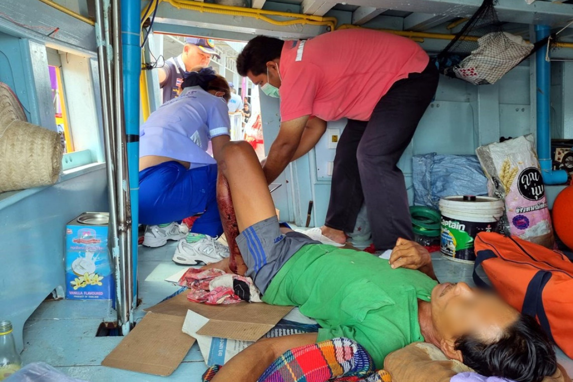 จากการตรวจสอบ ทราบชื่อผู้ประสบอุบัติเหตุชื่อนายสินชัย (ขอสงวนนามสกุล) อายุ 58 ปี สัญชาติ ไทย ช่างเครื่อง ได้ประสบอุบัติเหตุขณะปฏิบัติงานในเรือประมงในตำบลที่ละจิจูด 8°46'37''N ลองจิจูด 97°42'31"E  พื้นที่ใกล้เขตอุทยานแห่งชาติหมู่เกาะสิมิลัน โดยขณะใช้กว้านเรือดึงเชือกนั้น ขาผู้ประสบเหตุได้ไปติดกับเชือกของกว้านเรือ ทำให้ถูกดึงจนกระดูกบริเวณต้นขาซ้ายหัก ได้รับบาดเจ็บ ทางศคท.จว.พง.ฯ ได้ดำเนินการประสานศูนย์การเเพทย์เขาหลัก ในการมารอรับตัวผู้ป่วยที่แพปลา จากนั้นในเวลา 10:00น. เรือ ช.โชคบุญชู 888 ได้เข้าเทียบท่าที่ท่าเทียบเรือ wow Andaman เนื่องจากมีความสะดวกกว่าท่าเรือแพปลา และทีมแพทย์ทำการรับตัวผู้ส่งโรงพยาบาลด้วยความเรียบร้อยแล้ว