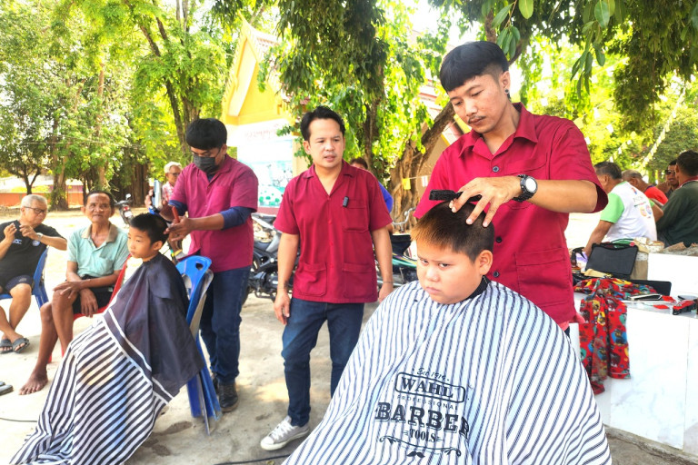 เช่นเดียวกับ ยายจำปา ซึ่งพาหลานชายชื่อ “น้องบู๊ธ”อายุ 3 ขวบ ซึ่งจะเข้าเรียนชั้นเตรียมอนุบาลของศูนย์เด็กเล็กในหมู่บ้าน ก็พาหลานชายมาตัดผมครั้งนี้เป็นครั้งที่ 2 เช่นกัน ซึ่งก็ไม่ต้องเสียเงิน 30-50 บาท หากต้องไปตัดผมที่ตลาด จึงชื่นชอบมากที่มีบริการจิตอาสามาตัดผมฟรีให้ถึงภายในหมู่บ้านแบบนี้