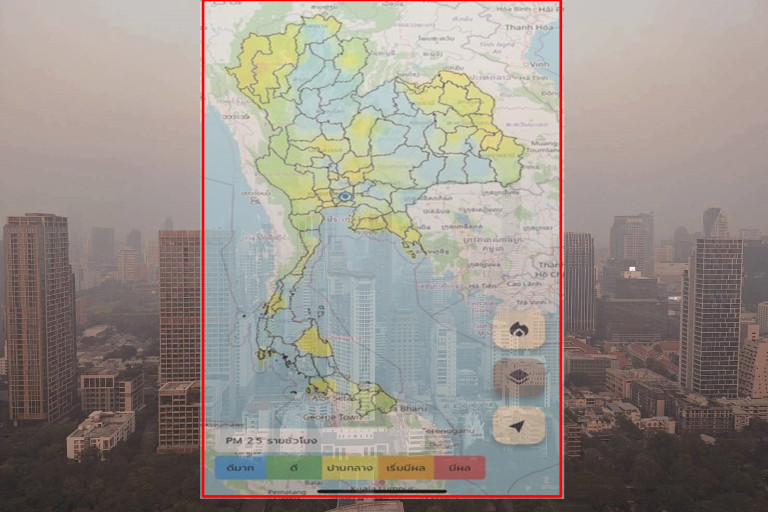กระทรวงการอุดมศึกษา วิทยาศาสตร์ วิจัยและนวัตกรรม (อว.) โดยสำนักงานพัฒนาเทคโนโลยีอวกาศและภูมิสารสนเทศ (องค์การมหาชน) หรือ GISTDA ร่วมกับสำนักงานการวิจัยแห่งชาติ, กรมควบคุมมลพิษ, มหาวิทยาลัยเกษตรศาสตร์ และมหาวิทยาลัยเชียงใหม่ เกาะติดสถานการณ์ฝุ่น PM 2.5 แบบรายชั่วโมง ด้วยข้อมูลจากดาวเทียมผ่านแอปพลิเคชั่น “เช็คฝุ่น” เมื่อเวลา 08.00 น. ของวันที่ 11 พฤษภาคม 2567 พบเพียง 2 จังหวัด ที่มีค่าคุณภาพอากาศเกินเกณฑ์มาตรฐานในระดับสีส้มที่เริ่มมีผลกระทบต่อสุขภาพ คือ #แม่ฮ่องสอน 42.2 ไมโครกรัม และ #บึงกาฬ 37.6 ไมโครกรัม ส่วนของจังหวัดอื่นๆ รวมทั้งกรุงเทพมหานคร พบคุณภาพอากาศปานกลางไปจนถึงคุณภาพอากาศดีมาก