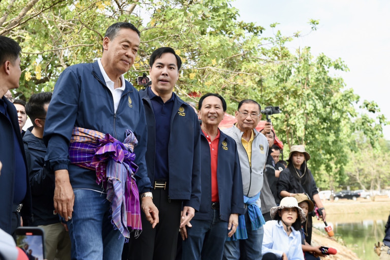 เมื่อเวลา 09.30 น. วันที่ 11 พ.ค. 2567 นายเศรษฐา ทวีสิน นายกรัฐมนตรี พร้อมนายอนุทิน ชาญวีรกูล รองนายกรัฐมนตรีและรมว.มหาดไทย นายเสริมศักดิ์ พงษ์พานิช รมว.การท่องเที่ยวและกีฬา พร้อมคณะ ลงพื้นที่ตรวจราชการติดตามประเด็นปัญหาน้ำท่วมขังซ้ำซากในพื้นที่เทศบาลแก้มลิง ตำบลปากแพรก อำเภอเมืองจังหวัดกาญจนบุรี โดยมี ร.ท.ทศพล ไชยโกมินทร์ ผู้ว่าราชการจังหวัดกาญจนบุรี นายสุรพงษ์ ปิยะโชติ รมช.คมนาคม ในฐานะเจ้าบ้าน สส. กาญจนบุรี และ สส.พรรคเพื่อไทย ประกอบด้วย นายอัครนันท์ กัณณ์กิตตินันท์ สส.เขต 1 นายชูศักดิ์ แม้นทิม สส.เขต 2 นายศักดิ์ดา วิเชียรศิลป์ สส.เขต 4 นายพนม โพธิ์แก้ว สส.เขต 5 มาต้อนรับ
