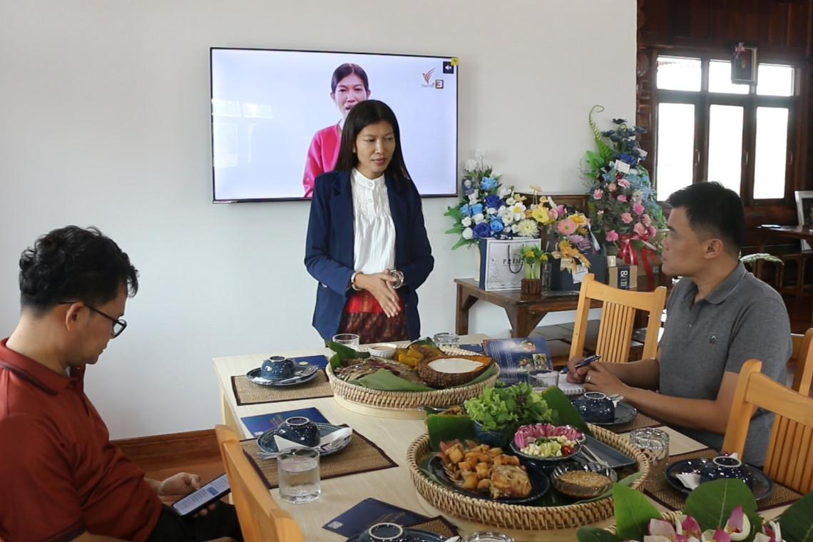 “เมนูอาหารที่ร้านได้จัดทำนั้นจะประกอบด้วย เมี่ยงกลีบบัวน้ำอ้อย เพราะเมี่ยงเป็นอาหารทานเล่น ที่จะช่วยเปิดต่อมรับรส ใช้กลีบบัวที่มีรสฝาดที่มีสรรพคุณช่วยสมานแผลภายในที่มองไม่เห็นเสริฟมาพร้อมกับปลาช่อนย่างเกลือภูเวียงหากเป็นฤดูร้อนจะปรับเปลี่ยนเป็นเมี่ยงแม่เป้งผักกะโดน โดยมีเครื่องเคียงตะไคร้แนมกับมะเดื่อ กล้วยดิบ ขนุนอ่อนหรือเปลือกแค ต่อมาคือหลามไก่ดำ ที่ร้านนำมาจากตำรายาอายุวัฒนะของคนอีสานโดยร้านจะเลือกไก่ดำที่มีลักษณะถูกต้องตามตำราอายุรเวท 5 อย่างมาปรุงในกระบอกไม้ไผ่ ด้วยสมุนไพรพื้นบ้านสูตรของครอบครัว ชูด้วยเกลือขี้กะทา กลั่นจนได้น้ำซุปไก่เข้มข้น ดื่มเพื่อนำมาบำรุงร่างกายให้ความอบอุ่น เมนุต่อมาคือออดกระบก ฟักทองย่าง ซี่งโครงหมู เมนูพิเศษที่คนอีสานจะทำให้แขกพิเศษคนสำคัญได้รับประทานเท่านั้น เพราะออดกระบก คือการเอาเม็ดกระบก ซึ่งมีโปรตีนสูง กับจิ้งหรีด โปรตีนสะอาดที่คนอีสานกินมาแต่โบราณ มาตำรวมกันจากนั้นกรองเอาเฉพาะน้ำ แล้วนำมาออดหรือเคี่ยวด้วยไฟอ่อนๆจนข้นเป็นครีม โดยวันนี้เสริฟคู่กับซี่โครงหมูอบไซค์ใหญ่พิเศษ ถือเป็นเมนูสุดพิเศษที่คนพิเศษจะได้รับประทานเท่านั้น”