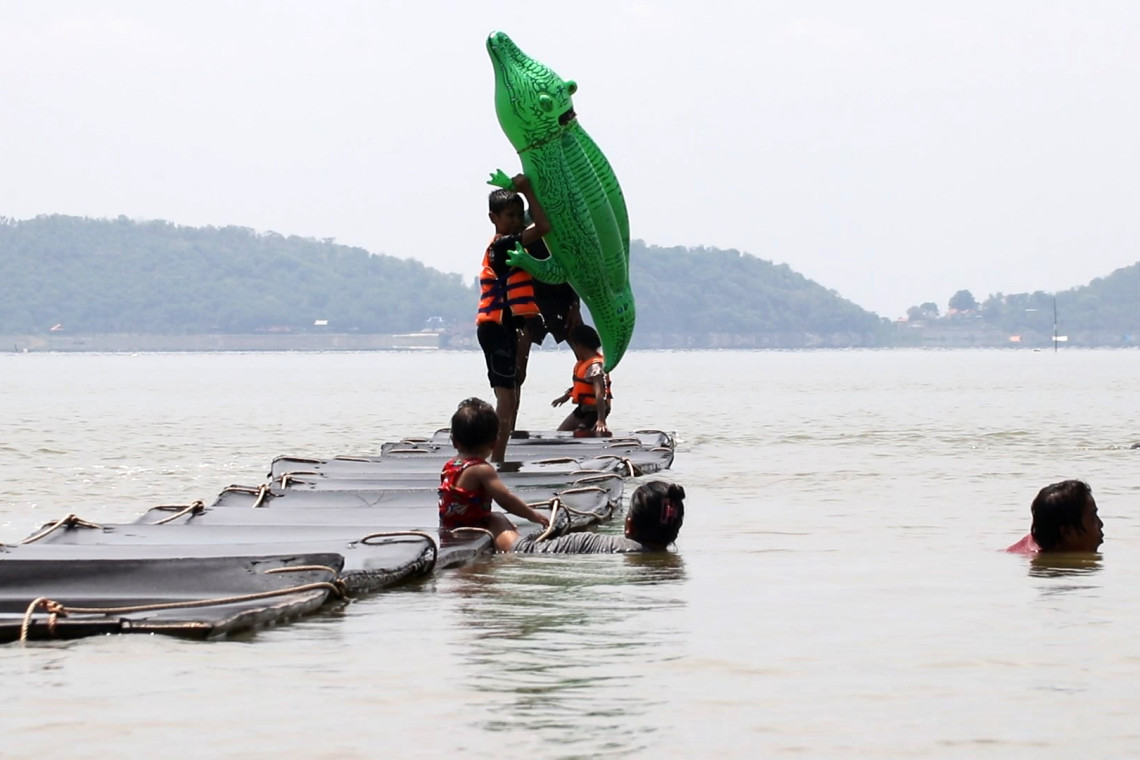 ที่จังหวัดสุพรรณบุรี บริเวณหาดทรายท้ายเขื่อนกระเสียว หรือที่ชาวบ้านขนานนามกันว่าทะเลน้ำจืดสุพรรณบุรี อำเภอด่านช้าง มีนักท่องเที่ยวจากทั่วสารทิศพาครอบครัวแห่มาเล่นน้ำ คลายร้อนพักผ่อนก่อนวันทำงานกันอย่างคึกคัก