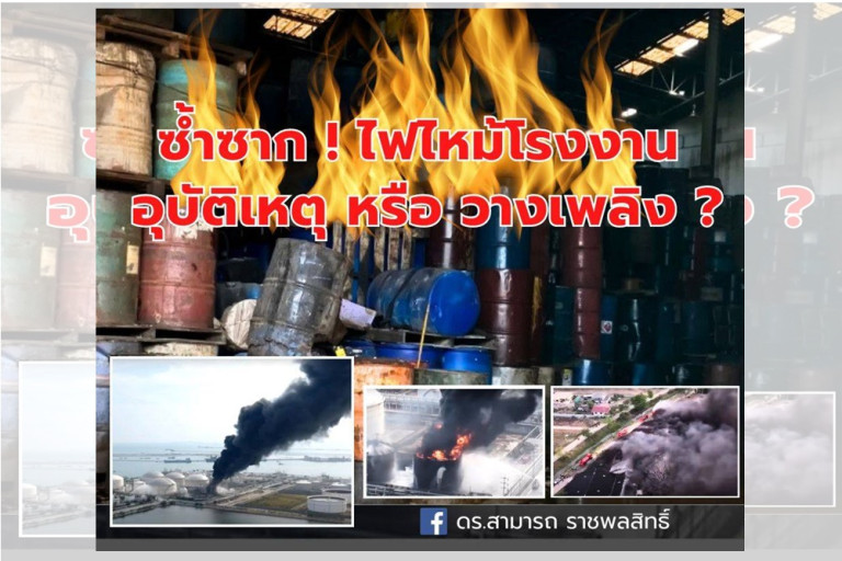 ช่วงนี้มีเหตุการณ์ไฟไหม้โรงงานซึ่งส่วนใหญ่เป็นโรงงานเก็บสารเคมีเกิดขึ้นค่อนข้างบ่อย ทำให้หลายคนติดใจสงสัยว่า เกิดจากอุบัติเหตุ หรือจงใจวางเพลิงกันแน่ ?